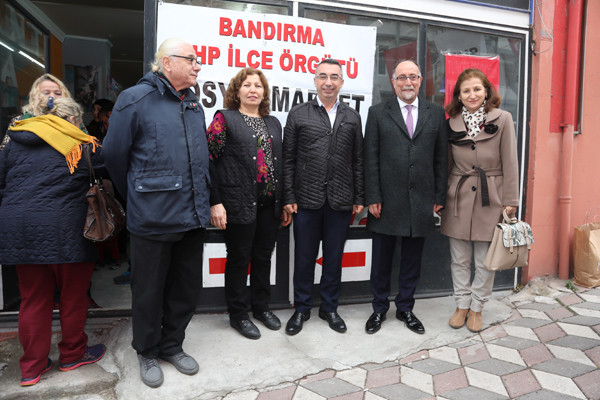SOSYAL MARKET PAŞABAYIR MAHALLESİNDE AÇILDI   Belediye Başkan Vekili Nüvit Erten Cumhuriyet Halk Partisi Kadın Kolları’nın Paşabayır Mahallesinde gerçekleştirdiği Sosyal Market açılışına katıldı.   Açılışa CHP İlçe Başkanı Hüseyin Bahar, Paşabayır Mahalle Muhtarı Belgin Şentür, vatandaşlar ve partililer katıldı.   Açılışta konuşma yapan CHP İlçe Başkanı Hüseyin Bahar: “Bandırma’da artık Cumhuriyet Halk Partisi (CHP) Kadın Kollarının bir rutini haline gelen Sosyal Market açılışımızı bu seferde Paşabayır Mahallesi’nde yapıyoruz. Daha öncede Ayyıldız , 100. Yıl ve  Kayacık Mahallesi’nde defaten gerçekleştirmiştik. Dediğim gibi artık bu kadınlarımızın rutini haline geldi. Burada emekleri geçen, Kadın Kolu Başkanımız, kadın kollarımız, muhtarımızın büyük emekleri var. Bu eşyaları bize sağlayan partililerimizin halkımızın destekleri var. Hepsine çok çok teşekkür ederim. Bundan sonrada Sosyal Market çalışmalarımız kadınlarımızın öncülüğüyle devam edecektir” dedi.   Dayanışmanın önemine değinerek söze giren Belediye Başkan Vekili Nuvit Erten: “Cumhuriyet Halk Partimizin Sosyal Market Projesi kapsamında Paşabayır mahallemizdeyiz. Sosyal dayanışmayı yükseklere taşımak, ihtiyacı olan insanlar ile omuz omuza yürüyebilmek adına gerçekleştirilen böyle bir projenin açılışını yapmaktan mutluluk duyuyorum. Böyle güzel bir projeyi gerçekleştirdikleri için CHP İlçe örgütümüze teşekkür ediyorum. Projemizin amacı ihtiyacı olan insanlarımıza dokunmak, çağın gerçeklerine yakışır biçimde bir elin verdiğini diğer elin görmediği anlayışı ile gerçek ihtiyaç sahipleri ile yan yana olmak. Ülkemizde ve şehrimizde inşallah hep gülen yüzler olur, gülmeyen bir yüzün kalmadığı bir dünya diliyorum. Projede emeği geçen herkese teşekkür ediyorum” dedi.