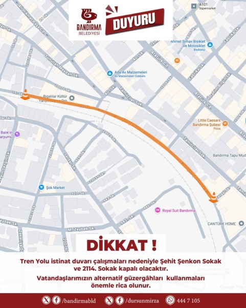 Tren yolu güzergâhında istinat duvarında meydana gelen yıkılma nedeniyle bölgede çalışma başlatılmıştır. Bu kapsamda Şehit Şenkon Sokak ve 2114. Sokak geçici olarak araç trafiğine kapatılmıştır.