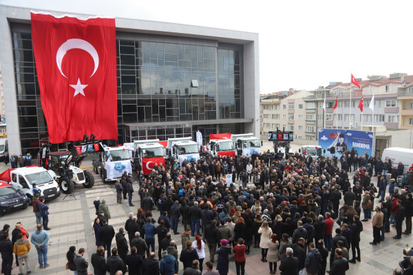 Bandırma Belediyesi saha çalışmalarının daha etkin ve hızlı bir şekilde yerine getirilebilmesi amacıyla 5 kamyon, 2 kamyonet, 2 iş makinesi ve 1 adette evde bakım hizmetleri aracı olmak üzere toplam 10 adet yeni aracı Belediye araç filosuna kazandırdı. Yeni araçların tanıtımı Belediye Hizmet Binası’nın önünde yapılan törenle gerçekleşti.    Düzenlenen tanıtım programında Belediye Başkanı Av. Tolga Tosun, CHP Balıkesir Milletvekili Ahmet Akın, CHP Balıkesir İl Başkanı Serkan Sarı, Belediye Başkan Yardımcıları Ozan Onur ve Metin Ok, CHP Bandırma İlçe Başkanı Hüseyin Bahar, Eski Dönem Milletvekili Namık Havutça, Eski Dönem Milletvekili ve Belediye Başkanı Sedat Pekel, Belediye Meclis Üyeleri ve çok sayıda davetli yer aldı. Programın açılış konuşmasını gerçekleştiren Belediye Başkanı Av. Tolga Tosun, geride kalan 9 aylık hizmet süresinde ilk olarak uygulamaya aldığımız tasarruf tedbirlerinin sonucunda bugün 10 adet yeni aracı Bandırma Belediyesi’ne kazandırdıklarını söyledi. Halka sunulan hizmetin kalite ve niteliğinin arttırılması adına yeni araçların alındığını belirten Başkan Tolga Tosun: “Belediye’nin yaşadığı ekonomik sıkıntılara rağmen, 9 ay boyunca yerine getirdiğimiz tasarruf tedbirleriyle gerçekçi bir planlamayla yeni yatırımlara kaynak yarattık. Bu kaynaklarla 10 adet yeni aracı filomuza dahil ettik. Alınan araçlar Kentimize ve Halkımıza hayırlı olsun” dedi. Belediye’nin imkanlarını en iyi şekilde değerlendirerek Bandırma’ya en kaliteli hizmeti sunma gayreti içinde olduklarını ifade eden Başkan Tolga Tosun, konuşmasında Büyükşehir Belediyesi ile yakın zamanda yapılacak olan anlaşmayla yeni bir Asfalt Planti’nin Belediye’mize kazandırılacağının da müjdesini verdi. Belediye Başkanı Av. Tolga Tosun tanıtım töreninde şunları söyledi: “Dolu dolu bir dokuz ayı geride bıraktık. Göreve geldiğimiz günden bugüne kadar Belediyemizin gelirleri ve giderlerindeki düzenlemeleri gerçekleştirmek amacıyla çalışmalarımıza başladık. Bu süreçte 5 yıllık kalkınma ve stratejik planımızı gerçekleştirdik. Bunu yaparken aynı zamanda Belediyemizin kurumsallaşması adına adımalar attık. Belediyemizin kendi iş ve işlemleriyle ilgili makine parkıyla ilgili çalışma usul ve esaslarıyla ilgili kurumsallaşma sürecini gerçekleştirdik. Bu süreç hızlı bir şekilde devam ediyor. Belediyemizin mevcut olan giriş alanında yaptığımız düzenlemeden tutunda şantiyemizde birçok düzenlemeler gerçekleştirdik. Vatandaşlarımıza daha iyi ve daha verimli hizmeti en iyi şekilde nasıl yaparız düşüncesiyle çalışmalarımızı gerçekleştiriyoruz” dedi.  “Eski araçlarımızın yenileyerek daha kaliteli ve hızlı hizmeti sunacağız” Başkan Tolga Tosun: “Belediyemiz birçok müdürlüğümüzle halkımıza en iyi hizmeti sunma gayretinde. Bunlardan bir tanesi de Fen İşleri Müdürlüğümüzdür. Bu müdürlüğümüz bünyesinde bulunan araçlarımız oldukça eski durumda olan araçlarımız. Bu nedenle de sürekli olarak farklı birçok arıza ortaya çıkıyordu. Bu da maliyet anlamında bir külfet yaratıyordu. Uzun süredir de araç filomuzda yenileme çalışmaları yapılmamış. Tasarruf tedbirlerimizin ışığında bizde tüm bu sıkıntıları gidermek adına bir çalışma gerçekleştirdik ve araç filomuza yeni araçlarımızı dahil ettik. Amacımız bundan sonra da araç filomuza yenilerini eklemek. “Amacımız; vatandaşlarımızın vergileriyle en iyi, en adaletli ve eşit hizmeti sunmak” “Bizim amacımız vatandaşlarımızın vergilerinden toplanan bu ekonomiyi en iyi şekilde değerlendirerek yine siz değerli halkımıza en iyi, en adaletli ve eşit hizmetleri sunmak niyetindeyiz. Çalışmalarımız bir program dahilinde devam ediyor. Başta kreş Projelerimiz olmak üzere diğer tüm projelerimiz etap etap yerine getirilecek. Bu süreçte tüm mahallelerimize dokunmaya çalışıyoruz. Sağ olsun değerli muhtarlarımız bu süreçte bizlere büyük destek veriyorlar. Vatandaşlarımızın isteklerini ve beklentilerini bizlere iletiyorlar. Kendilerine çok teşekkür ediyorum. Ayrıca belediyemizde teknolojik yenilenmeyi amaçlıyoruz. Böylece hem malzemeden hem de zamandan tasarruf etmiş olacağız” “Yeni bir Asfalt Plantini Belediyemize kazandıracağız” Başkan Tolga Tosun: “Yönetim anlayışımızla daha uzlaşmacı daha ortak akıl hedefli bir politika ile yine vatandaşımızın yararına olacak şekilde yine Büyükşehir Belediyemizden bir Asfklat Plantini belediyemize kazandıracağız. Bununla ilgili süreç devam ediyor. Önümüzdeki günlerde o tesisisin Bandırmamıza kazandırmamızla kentimize güzel bir hizmetleri yerine getirmiş olacağız. Tesis Ayyıldıztepe Mevkiinde bulunan Taş Kırma Tesisimizde faaliyete geçecek. Bu araçların zaman ve yakıt açısından oldukça tasarruf sağlayacak. Bu sürece destek veren katkı sunan Büyükşehir Belediye Başkanımıza, Daire Başkanlarımız ve Daire Müdürlerimize çok teşekkür ediyorum. “Yeni araçlarımız kentimize, ülkemize ve halkımıza hayırlı olsun” Başkan Tolga Tosun: “Bizler Bandırma’nın yerel yönetimi olarak Meclis Üyesi ve Daire Müdürü arkadaşlarımızla ortak akıl ve koordinasyonla hareket ederek en iyi hizmeti yerine getirmek istiyoruz. Ekonomik anlamda bir çok olumsuzluğa rağmen sizlere sevdalısı olduğumuz bu kente en güzel hizmeti yapmanın gayreti içindeyiz. Bugün bu törenimizde bizleri yalnız bırakmadığınız için ayrıca teşekkür etmek istiyorum. Yeni araçlarımız kentimize, ülkemize ve halkımıza hayırlı olsun”