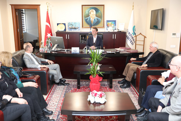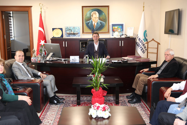 YENİ SEÇİLEN CHP İLÇE ÖRGÜTÜN’DEN BAŞKAN TOLGA TOSUN’A ZİYARET Bandırma Belediye Başkanı Av. Tolga Tosun, yeni seçilen Cumhuriyet Halk Partisi (CHP) Bandırma İlçe Yönetimini makamında konuk etti. 21 Ocak’ta yapılan Bandırma CHP İlçe Teşkilatı Olağan Kongresi’nde İlçe Başkanlığı’na seçilen Selim Panç ve CHP İlçe Yönetimi Belediye Başkanı Av. Tolga Tosun’u makamında ziyaret etti. CHP İlçe Teşkilatının ziyaretinden duyduğu memnuniyeti dile getiren Belediye Başkanı Av. Tolga Tosun: “CHP İlçe Başkanlığına seçilen Selim Panç ve Yönetim Kurulu’nu tebrik ediyor yeni görevlerinde başarılar diliyorum. Kongre sonrası göreve gelen tüm kademelerin partimiz ve Bandırmamız adına başarılı çalışmalara imza atacağına inanıyorum” dedi. Nazik ev sahipliği için Belediye Başkanı Av. Tolga Tosun’a teşekkür eden CHP İlçe Başkanı Selim Panç ve Yönetim Kurulu üyeleri ile karşılıklı sohbet ve fikir alışverişinde bulunulan ziyaret hatıra fotoğrafı çekilmesi ile son buldu.