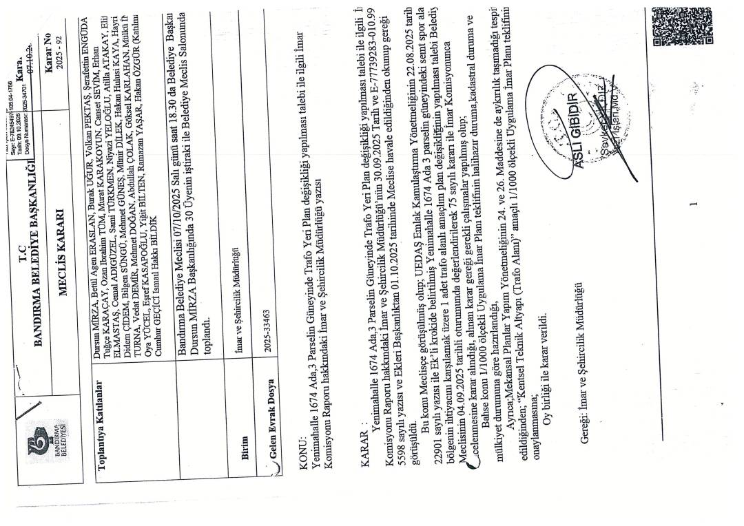 İlçemiz Yenimahalle 1674 ada 3 parselin güneyindeki alana ‘Trafo Alanı’ amaçlı Uygulama İmar Planı değişikliği teklifi Belediyemiz Meclisinin 07.10.2025 tarih ve 92 sayılı kararı ile kabul edilmiştir.