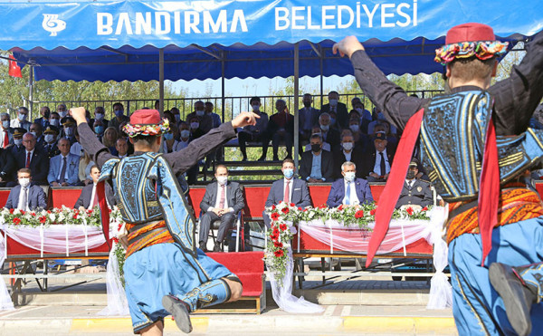 Önce Cumhuriyet Meydanında; devlet kurumlarının Atatürk’e çelenk sunumu ve saygı duruşundan sonra okunan İstiklal Marşıyla, Bandırma’nın Kurtuluş Günü resmi kutlama tören programı