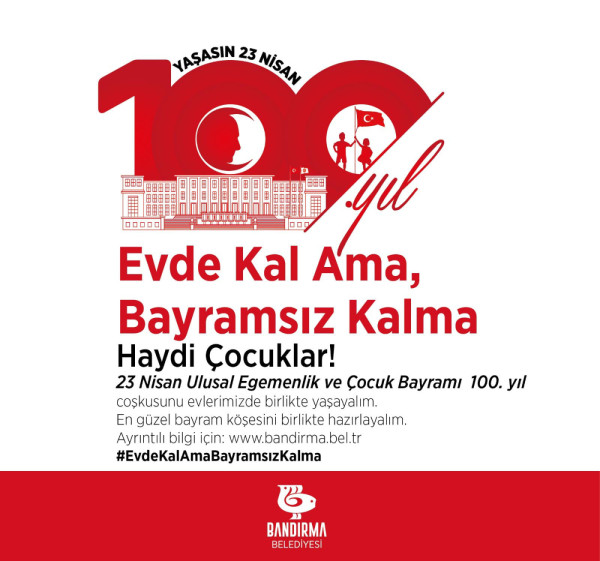 Bandırma Belediyesi 23 Nisan’ın 100. Yıl kutlamaları kapsamında bir kampanya düzenliyor. Tüm dünyayı etkileyen corona virüs salgını nedeniyle evlerimizde kalmaya özen gösterdiğimiz