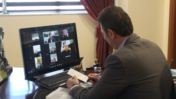 Belediye Başkanı Av.Tolga Tosun salgınla mücadele çalışmaları kapsamında başta Büyükşehir Belediyesi olmak üzere İlçe Belediye Başkanlarıyla Telekonferansla görüşmelerini gerçekleş