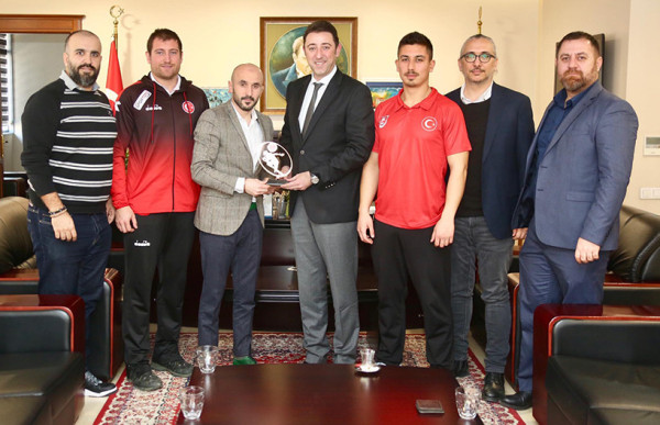 Bandırma Jets Korumalı Futbol Spor Kulübü Başkanı Ertan Taştan, Yönetim Kurulu Üyeleri, Milli Sporcuları Federasyon Başkanı Murat Pazan’la birlikte Belediye Başkanı Av. Tolga Tosun