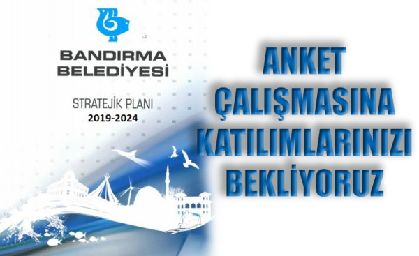 Bandırma Belediyesi, 2019-2024 dönemi Stratejik Planı çalışmaları kapsamında halkımızın görüşlerini almak düşüncesiyle ve geniş bir katılım sağlamak amacıyla bir anket çalışması dü