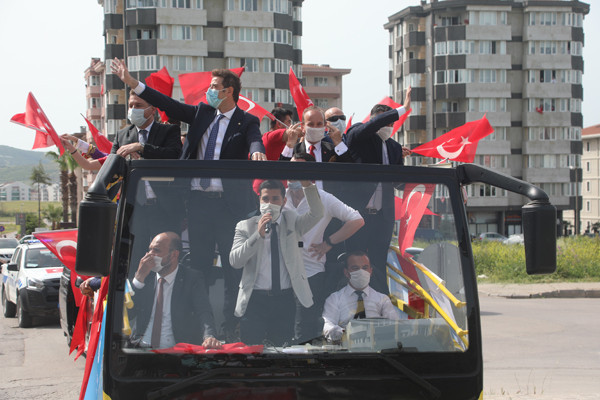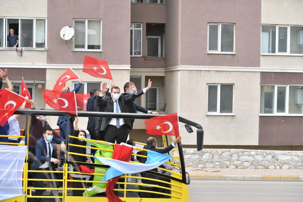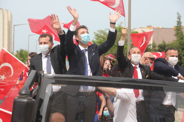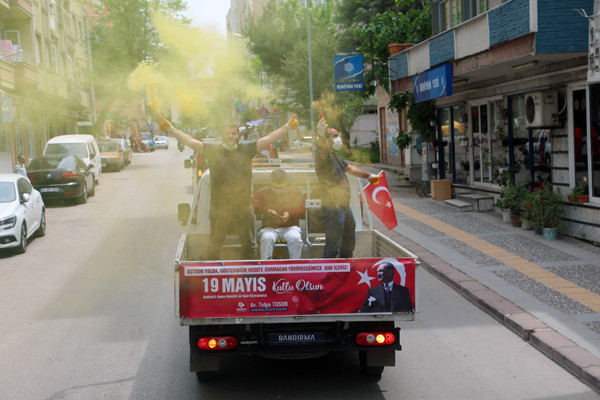 Bu yıl Koronavirüs Covid-19 salgını sebebiyle yaşanan sokağa çıkma yasağı ve toplu kutlama kısıtlama nedeniyle 19 Mayıs kutlamaları gerçekleştirilemedi.   Ancak salgın sürecinde vatandaşlarımızın moralini yükseltmek ve 19 Mayıs’ı kutlamak için Belediye Başkanı Av. Tolga Tosun ve Büyükşehir Belediye Başkanı Yücel Yılmaz hazırlanan kortej ile şehir turu atarak vatandaşların bayramını kutladı.   19 Mayıs Kortejine vatandaşlar ses sisteminden çalan müzik ve marşlara balkonlara ellerinde bayrakları ile çıkarak eşlik ettiler.