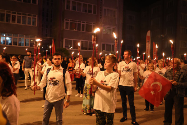 19 MAYISIN 100. YIL COŞKUSU GECE YOLCULARI KONSERİ İLE SON BULDU   Bandırma Belediyesi 19 Mayıs Gençlik ve Spor Bayramı’nın 100. Yılında pek çok etkinliğe imza attı. Saat 22.00’deki Fener alayının ardından 23.00’de Cumhuriyet Meydanı’nda “Gece Yolcuları” konseri gerçekleşti.   Bandırma Belediyesi ve Atatürkçü Düşünce Derneğinin (ADD) ortaklaşa düzenlediği fener alayı büyük bir coşkuyla gerçekleşti. Migros önünden başlayan yürüyüş Ordu Caddesi güzergâhında devam ederek Cumhuriyet Meydanında sona erdi. Fener Alayına ellerinde bayraklarla çok sayıda vatandaş katıldı. Yürüyüşün ardından Cumhuriyet meydanında Gece Yolcuları konseri için toplanan binlerce kalabalık hep bir ağızdan İstiklal Marşı’nın okunmasının ardından marşlar çalarak hep bir ağızdan eşlik edildi.   Konserde konuşan Bandırma Belediye Başkanı Av. Tolga Tosun: “19 Mayıs bir ulusun yazgısının değiştiği gündür. Bu gün bir milletin bağımsızlığını, yine milletin azim ve kararının kurtaracağına inanan bir liderin Mustafa Kemal Atatürk’ün doğduğu gündür.19 Mayıs Türk ulusunun bağımsızlık savaşını fiilen başlatan bir tarihtir. Bu gün buradan Cumhuriyet devrim ve ilkeleri ışığında, o günkü azim ve kararlılıkla tekrar haykırıyoruz. Yüz yıl önce yenilmedik. Yüz bin yıl geçse de yenilmeyeceğiz. 19 Mayıs Gençlik ve Spor Bayramınız kutlu olsun” dedi.   Tosun, bu muhteşem coşkunun fener alayı ve Cumhuriyet Meydanına taşınmasına katkı sunan Atatürkçü Düşünce Derneği Bandırma Şube Başkanlığına teşekkür etti. Konserde Belediye Başkanı Tolga Tosun, Belediye Meclis Üyeleri Adil Levent Coşkun, Selim Panç, Fatma Sibel Salı, Ersan Kırbaş, Merve Yılmaz Polat, CHP Bandırma İlçe Başkanı Hüseyin Bahar, ADD Bandırma Şube Başkanı Serdar Polat’ta hazır bulundu.