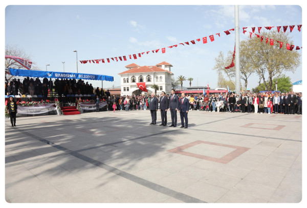 23 Nisan Ulusal Egemenlik ve Çocuk Bayramımızın coşkusunu Cumhuriyet Meydanımızda düzenlediğimiz tören ve gösteriler ile kutluyoruz. Cumhuriyet Meydanımızda bulunun Atatürk Anıtına Çelenk sunuldu. Ulu Önder Gazi Mustafa Kemal Atatürk ve Aziz Şehitlerimiz adına bir dakikalık saygı duruşunun ardından İstiklal Marşımız okundu. Kutlama törenine Kaymakamımız Engin Aksakal, Garnizon Komutanımız Hv. Plt. Tuğ. Gen. Selahattin Akalp, Cumhuriyet Başsavcımız Cüneyt Demirdaş, Belediye Başkanımız Av. Tolga Tosun, Balıkesir Büyükşehir Belediyesi Başkan Vekili Mehmet Birol Şahin, 17 Eylül Üniversitesi Rektör Yardımcısı Alparslan Serel , İlçe Milli Eğitim Müdürü Mutlu Aslan, Siyasi parti temsilcileri ve Cumhuriyet sevdalısı Bandırmalılar katıldı. İlk ve ortaokul sınıfı öğrencilerimiz halk oyunları ve modern dans gösterimleri gerçekleştirdi. Günün anlam ve önemine vurgulayan şiirler okundu. Kutlama programlarımız gün boyu devam edecek.