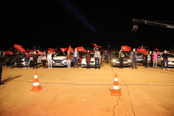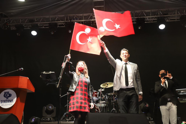29 EKİM COŞKUSU YENİ TÜRKÜ KONSERİ İLE KUTLANDI 29 Ekim Cumhuriyet Bayramı kapsamında Bandırma Belediyesi tarafından Yeni Türkü konseri Pandemi nedeniyle arabalı olarak gerçekleştirildi. Şoförler ve Otomobilciler Odası Düğün Salonu Arkası Kamyon Parkında gerçekleştirilen konsere vatandaşlar sosyal mesafe kuralına uyarak Yeni Türkü’nün şarkılarına ve okunan marşlara coşku ile eşlik ettiler. Ayrıca konser Bandırma Belediyesi’nin sosyal medya hesaplarından canlı olarak yayınlandı. Konserde Belediye Başkanı Av. Tolga Tosun günün anlam ve önemine dair Yeni Türkü Gurubu solisti Derya Mustafa Köroğlu’na çiçek ve Bandırma Vapuru tablosu hediye etti.