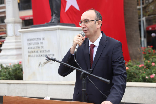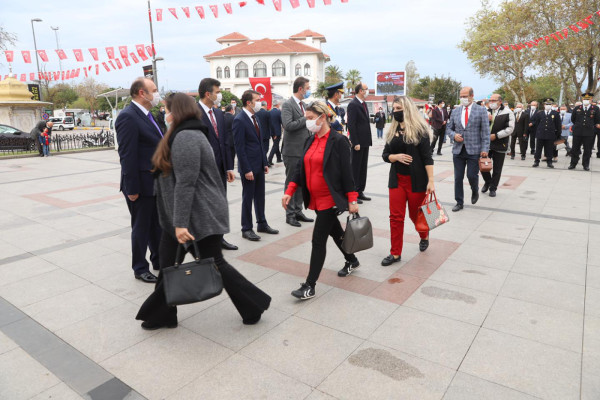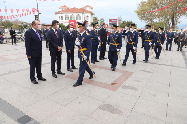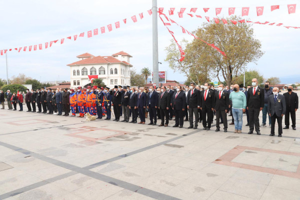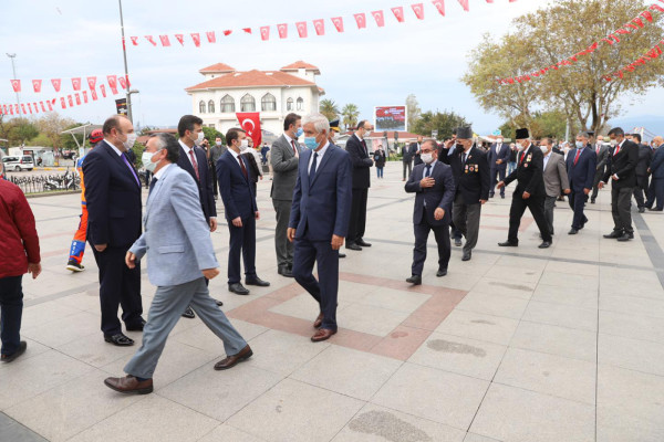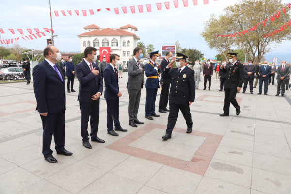 29 EKİM CUMHURİYET BAYRAMI TÖRENLE KUTLANDI Bu yıl 97. yılı kutlanan 29 Ekim Cumhuriyet Bayramı etkinlikleri kapsamında saat 10.00’da Cumhuriyet Meydanında tören düzenlendi. Törene Bandırma Kaymakamı Günhan Yazar, Garnizon Komutanı Hv. Plt. Tuğgeneral Oğuz Okuyucu, Belediye Başkanı Av. Tolga Tosun, Başsavcı Cüneyt Demirdaş, Adalet Komisyon Başkanı Mehmet Tarakçı, Onyedi Eylül Üniversitesi Rektörü Prof. Dr. Süleyman Özdemir, siyasi parti temsilcileri, sivil toplum örgütleri, dernekler ve daire müdürleri katıldı. Tören pandemi kuralları çerçevesinde protokol selamlaması ile başladı, saygı duruşu ve İstiklal Marşının olunmasının ardından Kaymakam Günhan Yazarın günün anlam ve önemini belirten konuşmasının ardından son buldu.