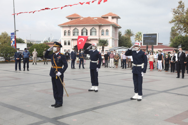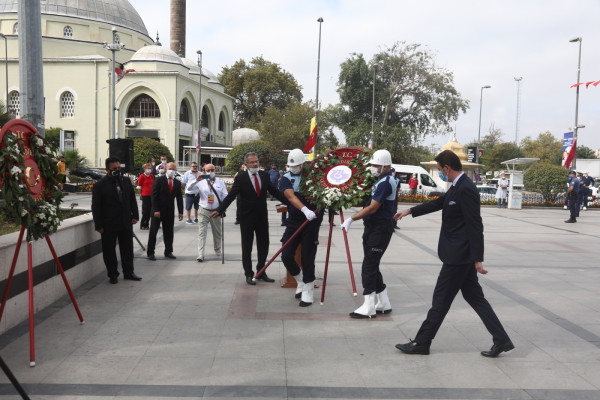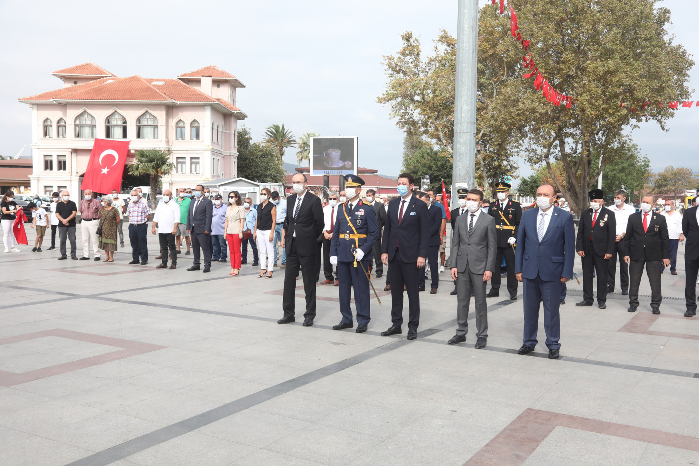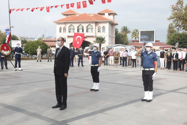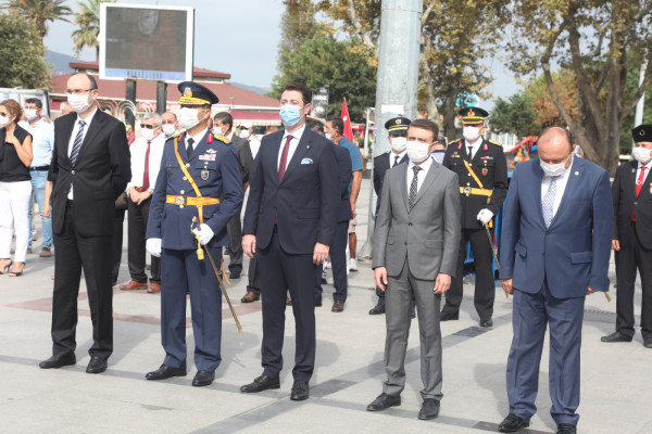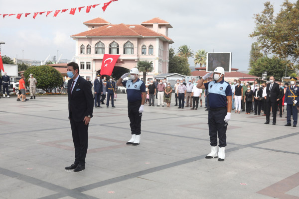 30 Ağustos Zafer Bayramı kutlamaları Cumhuriyet Meydanındaki Atatürk Anıtına çelenk sunma programıyla başladı. Çelenk sunumunun ardından Cumhuriyetimizin kurucu Gazi Mustafa Kemal Atatürk ve aziz şehitlerimiz için saygı duruşu yapıldı ve sonrasında İstiklal Marşımız söylenerek tören tamamlandı.