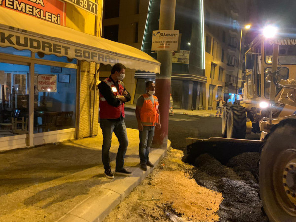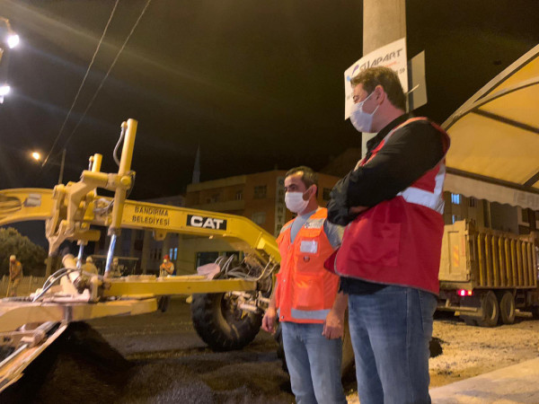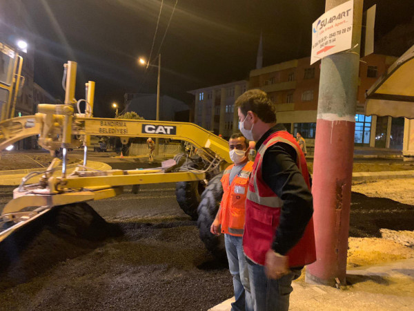 Geçtiğimiz hafta Atatürk Caddesi ile 1. İmar Yolu sokağının kesiştiği noktada başlayan kavşak düzenleme çalışmaları tamamlandı.   Dört gün boyunca uygulanan sokağa çıkma yasağında çalışmalarını yoğun bir şekilde sürdüren Bandırma Belediyesi ekipleri, gece geç saatlere kadar devam eden çalışmaların ardından yenileme çalışmalarını tamamladı ve trafiğe açıldı.   Belediye Başkanı Av. Tolga Tosun, yeni kavşak yapım çalışmaları boyunca her gün ekipleri ziyaret ederek çalışmaları yakından takip etti. Yeni düzenlemeyle ile ilgili açıklamalarda bulunan Belediye Başkanı Av. Tolga Tosun: “Dört gün boyunca uygulanan sokağa çıkma yasağında trafik akışının olmamasını fırsat bilen ekiplerimiz gece gündüz çalışarak Atatürk Caddesi ile 1. İmar Yolu sokağının kesiştiği noktadaki kavşak çalışmalarını tamamladı. Ekiplerimiz tarafından yapılan teknik ayarlama ve ölçümlerin ardından buradaki yeni düzenlememize son şeklini verdik. Son olarak ekiplerimiz dün gece geç saatlere kadar asfalt serim işlemlerini tamamladılar ve kavşağı trafiğe açtık. Önümüzdeki günlerde kavşağımızı yeşillendirerek daha güzel bir görünüme kavuşması için çalışmalarımıza başlayacağız” dedi.