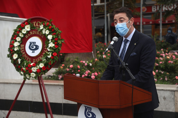 ATATÜRK'ÜN BANDIRMA’YA GELİŞİNİN 95. YIL DÖNÜMÜ YOĞUN YAĞIŞ ALTINDA KUTLANDI   Ulu Önder Mustafa Kemal Atatürk’ün Bandırma’ya gelişinin 95. yıl dönümü Eski İskele’de temsili karşılama ve Cumhuriyet Meydanında düzenlenen resmi törenle kutlandı.   Yoğun yağış altında düzenlenen kutlama etkinliklerinde ilk olarak Ulu Önder Atatürk'ün Bandırma’ya gelişi ve Eski İskele’ye inişinin temsili töreni gerçekleştirildi. Ardından resmi tören programı Cumhuriyet Meydanı’ndaki törenle devam edildi. Cumhuriyet Meydanı’nda ilk olarak Saygı Duruşu ve İstiklal Marşı okundu ve Atatürk Anıtına çelenkler bırakıldı.   Törenin son bölümünde Belediye Başkanı Av. Tolga Tosun günün anlam ve önemiyle ilgili konuşmasını yaptı. Başkan Tolga Tosun yaptığı konuşmada şu ifadelere yer verdi: "Bugün şehrimizin tarihteki en önemli günlerinden birini yaşıyoruz. Kurtuluş Savaşı destanımızda Bandırmamızın önemi ve değeri çok büyük. Emperyalizmi yok etmek için yola çıkan, milletimizin ebedi Başkomutanı; Gazi Mustafa Kemal ATATÜRK’ü Samsun’a taşıyan vapurun adında biz varız. Kurtuluş Savaşımızda, bu topraklardan sonsuza dek kovduğumuz düşmana, Ayyıldız Tepe’de sıkılan son kurşunda yine biz varız. Milletimizin adeta DNA’sına işlenen bu mücadele hafızalarımızdan asla kaybolmayacaktır. Emperyalizmin işgaliyle acı dolu günler yaşayan Bandırmamız ve bütün ülkemiz düşmanlardan temizlenmiş, çağdaş ve modern Türkiye Cumhuriyeti kurulmuştu. Yıkılan ama yeniden ayağa kalkan ülkemizi, Gazi Mustafa Kemal Atatürk karış karış geziyor, denetliyor, halka moral veriyordu. 8 Ekim 1925 Perşembe günü Bandırma’ya geleceği duyurulmuştu. O gün Bandırma’da yaşayanların coşkusu ve sevinci inanılmazdı. Öğlen saatlerinde Ertuğrul yatıyla iskeleye yanaşan Atatürk, Bandırmalıların yoğun sevgisi ve ilgisiyle karşılandı. Nasıl sevilmesin ki! Bu milleti yok olmaktan, köle olmaktan kurtaran, özgür ve bağımsız yepyeni bir devleti kuran böyle bir lider sevilmez mi? Atatürk, şehrimizde gezerken, 2 yıldan fazla işgal altında kalan Bandırmamızdaki işgalin izlerini gördü. Sonra, hepimizin belleğine kazınan konuşmasında: “Milletimiz çalışkandır! Bu fazileti taşıyan Bandırmalıların en kısa zamanda şehirlerini imar edeceklerinden, halen barut ve is kokan bu güzel beldeyi mamur hale getireceklerinden hiç şüphe etmiyorum" dedi. Cumhuriyetimizin kurucusu Yüce Önderimiz Atatürk’ün güvenine layık olmak için bizlerde en doğru planlamalarla, Bandırmayı; yaşamaktan mutlu olunan, çağdaş, zengin, huzurlu bir kent olarak geleceğe taşımak için gece gündüz demeden çalışıyoruz. Bandırma; Atatürk ilke ve hedeflerinden, Cumhuriyetimizin temel değerlerinden, aydınlanma ve bilimden, demokrasi ve barıştan, kardeşlik anlayışından asla vazgeçmeyecektir. Bandırma’yı ziyaretlerinin yıl dönümünde; Gazi Mustafa Kemal Atatürk’ü, silah arkadaşlarını, kahraman şehit ve gazilerimizi, ayrıca Can Azerbaycan’ın haklı mücadelesinde şehit olan kardeşlerimizi rahmet ve saygıyla anıyorum” dedi.   Tören Bandırma Kaymakamı Günhan Yazar, Garnizon Komutanı Hv. Plt. Tuğgeneral Oğuz Okuyucu, Büyükşehir Belediye Başkanı Yücel Yılmaz, Bandırma Belediye Başkanı Av. Tolga Tosun, Cumhuriyet Başsavcısı Cüneyt Demirdaş, Onyedi Eylül Üniversitesi Rektörü Prof. Dr. Süleyman Özdemir, siyasi parti temsilcileri, muhtarlar, dernekler ve vatandaşların katılımıyla gerçekleşti.