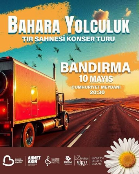 Bahara Yolculuk TIR Sahnesi Konser Turu Bandırma’da! Müzik dolu bir akşamda buluşmaya hazır mısınız? 10 Mayıs saat 20.30’da Cumhuriyet Meydanı’nda, Bahara Yolculuk konser turunun coşkusunu hep birlikte yaşayacağız. Tüm hemşehrilerimizi bekliyoruz.