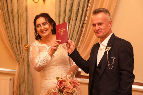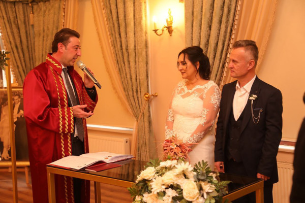 BANDIRMA BELEDİYESİNDEN SEVGİLİLER GÜNÜ SÜPRİZLERİ Bu özel günde aşklarını evlilikle taçlandırmak isteyen çiftler soluğu nikah masasında aldı. Ama tahmin edemedikleri ve unutamayacakları bir sürprizle karşılaştılar. Bandırma Belediye Başkanı Av. Tolga Tosun, özellikle 14 Şubat Sevgililer Gününde nikah masasına oturan iki çiftin nikahlarını bizzat kıydı. Şaşkınlık ve mutlulukları yüzlerinden okunan çiftler sevinçle teşekkür ederken, Belediye Başkanı mutluluk dilekleriyle imzaladığı nikah cüzdanlarını çeşitli hediyelerle birlikte takdim etti. Bandırma Belediyesi, Sevgililer Gününe özel “Hayata Anlam Katan Sevgidir” konseri ile Gizem Coşkun ve Fatih Ahıskalı’yı dinleyicileriyle Barış Manço Kültür Merkezin’de buluşturdu. Dinleyenlerin keyifli anlar yaşadığı konser sonunda konuşma yapan Başkan Tolga Tosun: “Birbirinden güzel eserler seslendirerek bizlere harika bir akşam yaşatan ve sevgililer günümüzü anlamlı kılan sanatçılarımıza teşekkür ediyorum” dedi. Konuşmanın ardından Başkan Av. Tolga Tosun, sanatçılara günün anlam ve önemine dair çiçeklerini takdim etti.