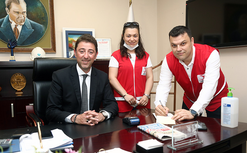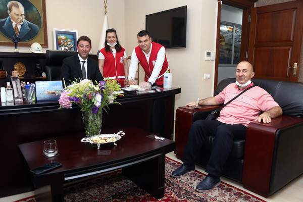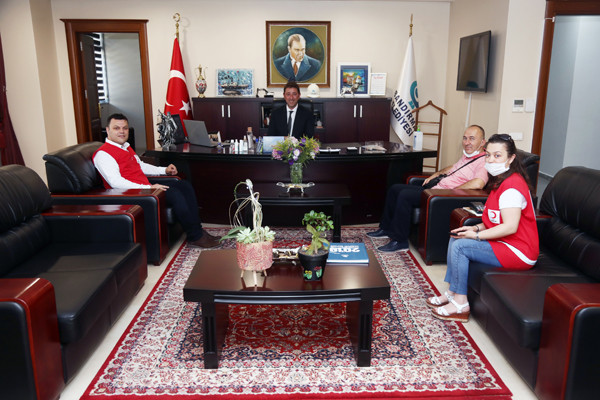 BANDIRMA KIZILAY ŞUBESİNDEN ANLAMLI ZİYARET   Kızılay Derneği Bandırma Şube Başkanı Halil Özümit ve ekibi Belediye Başkanı Av. Tolga Tosun’u makamında ziyaret etti.   Ziyarette Covid-19 salgını boyunca Bandırma Belediyesi ve Kızılay’ın gerçekleştirilen yardımlarda işbirliği ve uyumlu çalışmasından dolayı Belediye Başkanı Av. Tolga Tosun’a teşekkür etti. Çalışmaları ile Türkiye genelinde 218 şube içerisinden 7. olduklarını belirten Kızılay Başkanı Halil Özümit ayrıca Kurban Bayramı içinde Kızılay’ın gerçekleştirdiği “Hilal Olsun Türkiye” kampanyası hakkında Başkan Av. Tolga Tosun’a bilgi vererek destek istedi.   Ziyaretten duyduğu memnuniyeti dile getiren Başkan Av. Tolga Tosun: “Türkiye genelinde 218 şube içinden Bandırma Kızılay şubemizin 7. olması bizleri gururlandırdı. Bandırma Belediyesi olarak imkanlarımız ölçüsünde her zaman Kızılayımızın yanında olmaya devam edeceğiz. Pandemi sürecinde Kızılay Bandırma Şubemiz, Bandırma Kaymakamlığımız, Ticaret Odası ve Ticaret Borsamız, Belediyemiz ve birçok kurum ve hayırsever iş adamlarının desteği ile çok güzel çalışmalara imza atarak kentimizde yardıma ihtiyaç duyan herkesin kapısını çalmaya çalıştık. Yardımlarımızı bir elin verdiğini diğer el görmesin hassasiyeti ile yürüttük. Önümüzde toplumumuz için çok önemli olan dayanışma ve paylaşma duygularını zirveye çıkaran mübarek Kurban Bayramımız var. Kurban ibadeti toplumsal yardımlaşmayı sağlaması bakımından çok önemlidir. Bu yıl Kızılay’a bağışta bulunarak kurban ibadetimi yerine getirmekten memnuniyet duyacağım. Kızılay Bandırma Şubesine yapacağımız bağışlardan elde edilecek kurban kavurma konserveleri yine ihtiyaç sahibi vatandaşlarımıza dağıtılacak. Kızılay Bandırma Şube Başkanı Halil Özümit ve ekibine iyiliğe aracı olduğu için teşekkür ederim” dedi