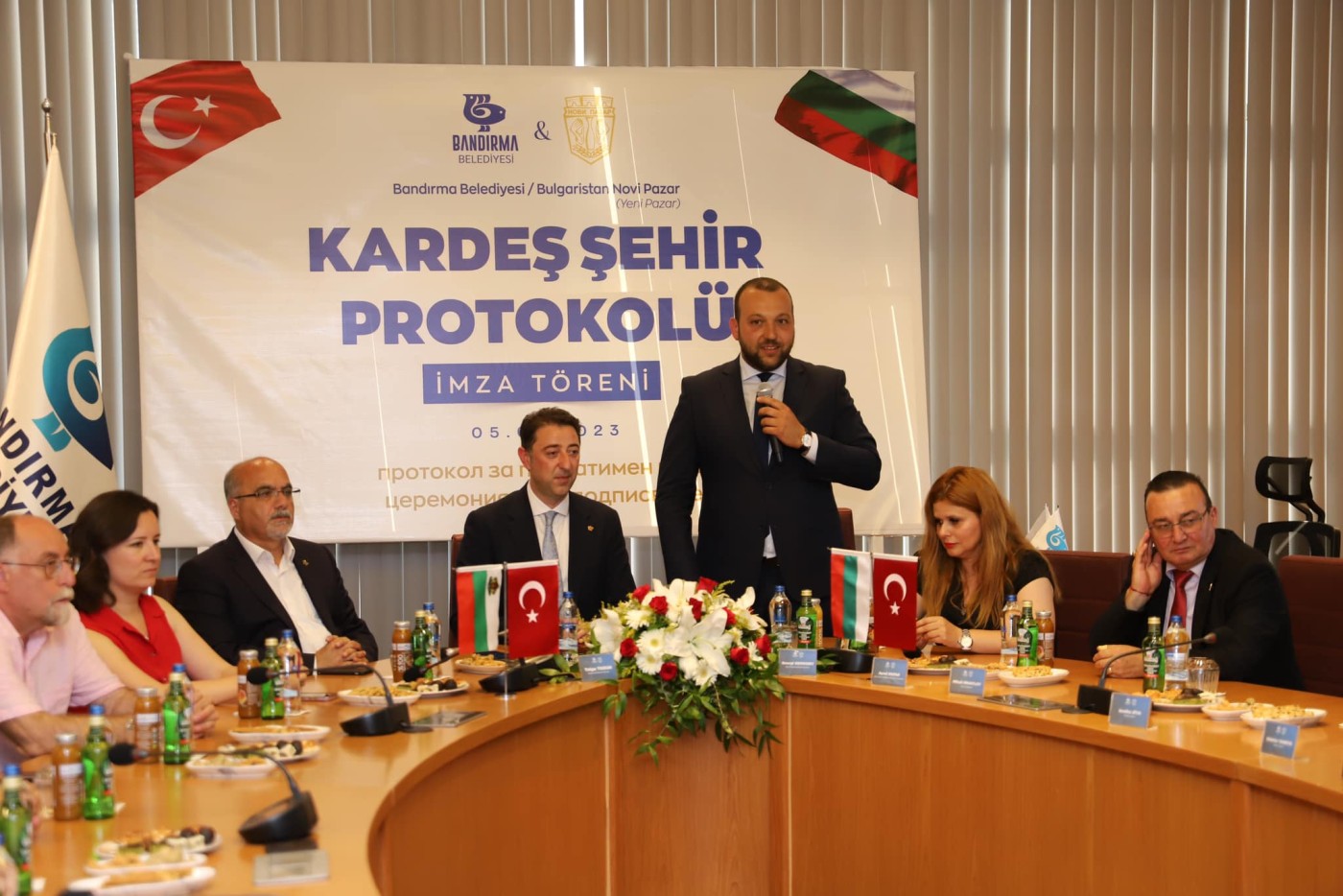 Novipazar Belediye Başkanı Georgi Georgiev ise konuşmasında, “Bandırma’ya geldiğimiz ilk andan itibaren anladım ki biz gelecek için çok önemli bir adım atıyoruz. Bu güzel günlerin ve iş birlikleriyle beraber güzel faaliyetler yapacağımızın göstergesidir. Bandırma Belediyesi ile Kardeş Şehir Protokolü imzalayacak olmamız nedeniyle çok mutluyuz,” sözlerine yer verdi.