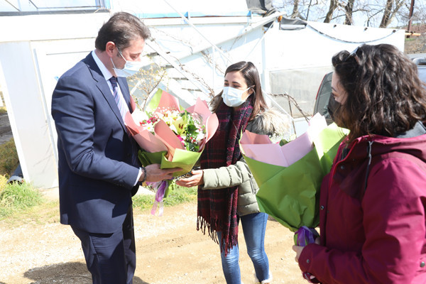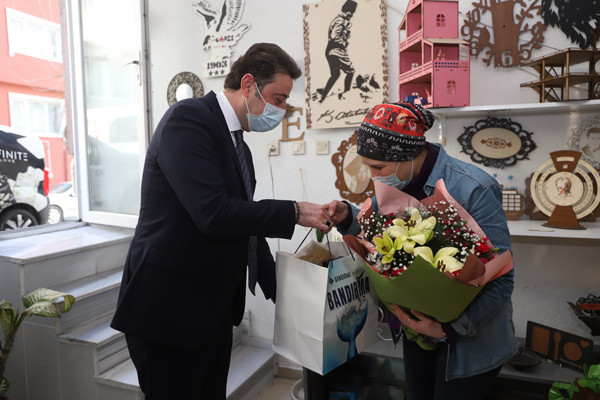 BAŞKAN AV. TOLGA TOSUN EMEKÇİ KADINLARI ZİYARET ETTİ Belediye Başkanı Av. Tolga Tosun 8 Mart Dünya Emekçi Kadınlar Günü sebebiyle kentimizde çalışan emekçi kadınlarımıza bir dizi ziyaret gerçekleştirdi. Ziyaretlerine ilk olarak Kentimizde Taksi Şoförlüğü yapan Melek Kutay’ı çalıştığı durakta ziyaret ederek başlayan Başkan Tolga Tosun oradan kendi tasarım atölyelerini oluşturan Elif Zennube Özenç ve Fatma Okuyanı çalışma atölyelerinde ziyaret ederek sohbet etti. Buradaki ziyaretlerinin ardından Edincik Yolu üzerinde Solucan Gübresi üretme tesisi kurucusu İlknur Pazarcık’ı kendi tesisinde ziyaret eden Başkan Tolga Tosun, ardından Doğanpınar Mahallesinde doğal köy ekmeği üretimi yapan Emine Adıcan’ı ziyaret etti. Başkan Tolga Tosun, ziyaretlerini Emre Mahallesinde Ceviz Fidan’ı üretimi yapan Asude Nur Papan ve İstanbul Sözleşmesi Yaşatır videomuza konuk olan Selda Can, İncilay Nergiz, Özlem Uğurdur’u ziyaret ederek tamamladı. Belediye Başkanı Av. Tolga Tosun ziyaretleri esnasında emekçi kadınlara günün anlam ve önemine dair çiçek ve hediyelerini takdim ettikten sonra meslekleri üzerine sohbet etti. Başkan Av. Tolga Tosun: “Bizler çağdaş Atatürk Cumhuriyetinde kadınların özgürlüğüne, hayatın her alanında erkeklerle eşit statüde temsil edilmesi gerektiğine inanıyoruz. Kadın varsa hayat vardır. Çalışan, üreten, mücadele eden bütün emekçi kadınlara selam olsun. Tüm kadınlarımızın 8 Mart Dünya Emekçi Kadınlar Gününü en içten dileklerimle kutluyorum” dedi.