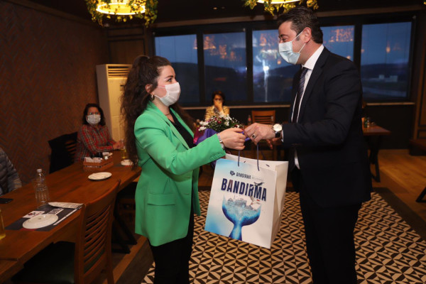 BAŞKAN AV. TOLGA TOSUN KADIN MECLİS ÜYELERİ VE MUHTARLARLA YEMEKTE BİR ARAYA GELDİ   Belediye Başkanı Av. Tolga Tosun 8 Mart Dünya Emekçi Kadınlar Günü etkinlikleri kapsamında Kadın Meclis Üyeleri ve Kadın Muhtarlarla yemekte bir araya geldi.   Kadın meclis üyeleri ve muhtarlara ithafen konuşan Başkan Tolga Tosun: “Ortaya koyduğumuz tüm çalışmalarda ve başarılı hizmetlerimizde sizlerin büyük emeği var. Hepinize bu gayret ve emekleriniz için teşekkür ediyorum. 8 Mart Dünya Emekçi Kadınlar Gününüz Kutlu Olsun” dedi.   Başkan Av. Tolga Tosun Yemek sonunda kadın meclis üyeleri ve kadın muhtarlara çiçek ve hediye takdim etti.