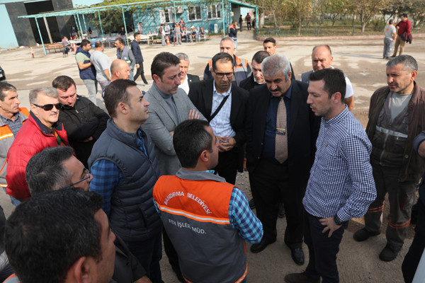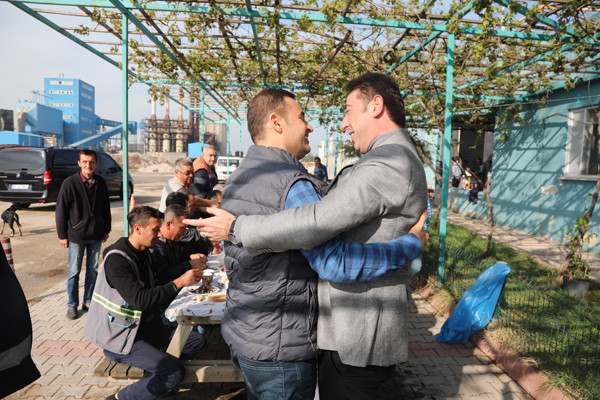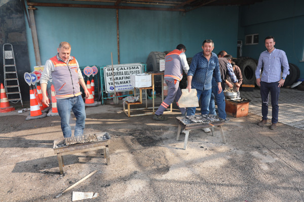 BAŞKAN AV. TOLGA TOSUN ÖĞLEN YEMEĞİNDE ŞANTİYEDE PERSONEL İLE BİR ARAYA GELDİ   Belediye Başkanı Av. Tolga Tosun, Balıkesir CHP Milletvekili Ahmet Akın, Belediye Başkan Yardımcısı Metin Ok, CHP İlçe Başkanı Hüseyin Bahar Fen İşleri Müdürlüğünün Bandırma Belediyesi Şantiyesinde düzenlemiş olduğu öğlen yemeğine konuk oldular.   Öğlen yemeğinden sonra Belediye Başkanı Av. Tolga Tosun Şantiyede incelemelerde bulunarak çalışmalar hakkında bilgi aldı.   İncelemelerden sonra Belediye personeline karşılama için teşekkür ederek sözlerine başlayan Belediye Başkanı Av. Tolga Tosun: “Arkadaşlar ellerinize emeklerinize sağlık. 6. ayımızı doldurduk. Geldiğimiz andan itibaren tasarruf tedbirleri ile başlayan, belli başlı değişiklikler ile devam eden çalışmalar yaptık. Geçtiğimiz süreçte stratejik planımızı, 5 yıl içinde yapacaklarımızın planlamasını yaptık. Bütçelerimizi de bu doğrultuda oluşturduk. Her zaman dediğimiz gibi öncelikle tasarruf edeceğiz, makine parkımızı yenileyeceğiz, teknolojimizi geliştireceğiz, giderlerimizi azaltacağız sözlerinden yola çıkarak çalışmalarımızı yürütüyoruz. İnşallah önümüzdeki günlerde Fen İşleri Müdürlüğümüze vereceğimiz 4 tane kamyon, 2 tane taşıyıcı yükleyici kamyonetlerle birlikte güzel bir başlangıç yapacağız. Bunun yanında çalışmalarımızı sürdürdüğümüz asfalt tesisimizi de yenileyip Ayyıldız tepeye taşıyacağız. Asfalt tesisimiz artık çalışmalarını oradaki şantiyemizden yürütecek. Emekleriniz için çok teşekkür ederim. Gerçekten uyum içinde koordineli bir şekilde çalışmalarınızı yürütüyorsunuz. Bundan sonrada yine aynı şekilde hizmetlerin aksamadan devam etmesi içinde çalışacağımıza inancım tamdır” dedi.