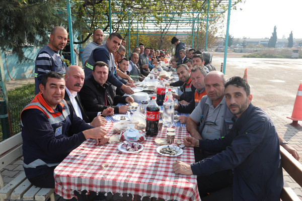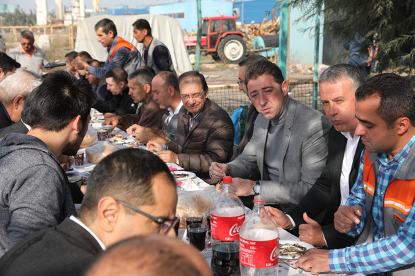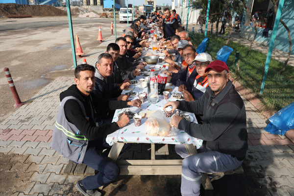 BAŞKAN AV. TOLGA TOSUN ÖĞLEN YEMEĞİNDE ŞANTİYEDE PERSONEL İLE BİR ARAYA GELDİ
