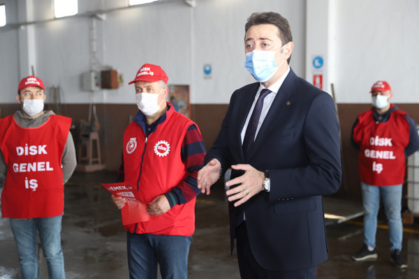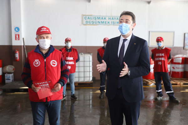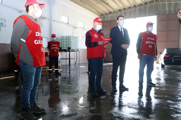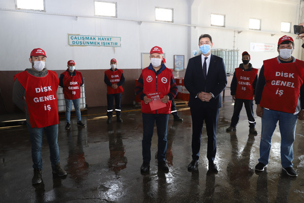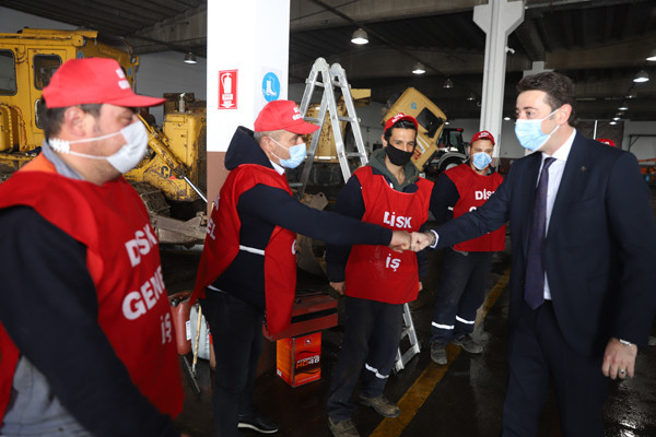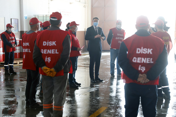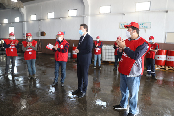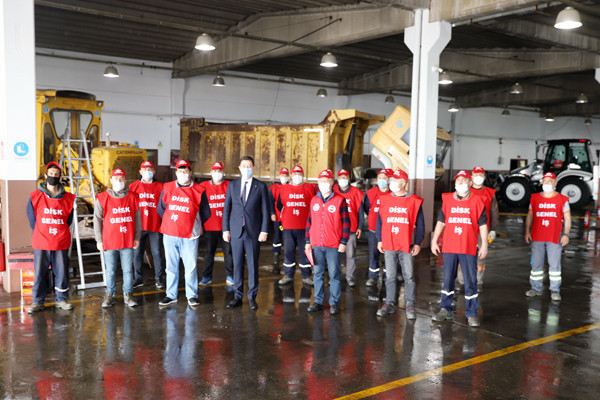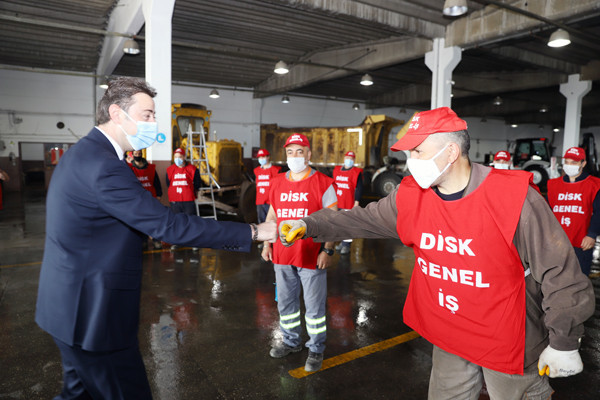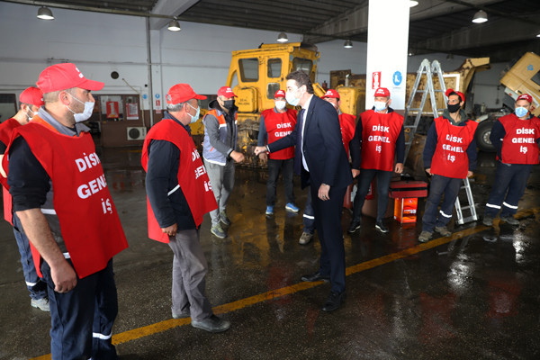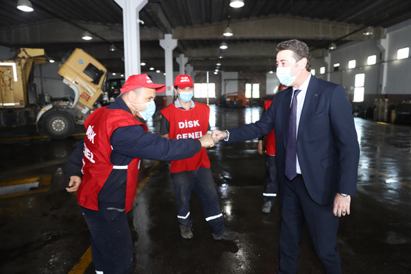 BAŞKAN TOLGA TOSUN BELEDİYE EMEKÇİLERİYLE BİR ARAYA GELDİ. Bu yıl 29 Nisan-17 Mayıs tarihleri arasında uygulanacak olan sokağa çıkma yasağından dolayı 1 Mayıs İşçi Bayramının kısıtlamalara takılacak olması nedeniyle Belediye Başkanı Av. Tolga Tosun bugün Belediye Şantiyesinde işçilerle bir araya geldi. Belediye Başkanı Av. Tolga Tosun işçilere yaptığı konuşmada: “1 Mayıs İşçi ve Emekçi Bayramımız kutlu olsun. Bir yılı aşkın süredir mücadele verdiğimiz salgın sürecinde belediye emekçilerimiz ve çalışanlarımızla özverili çalışmalar gerçekleştirdik ve bu nedenle de tüm belediye ve kamu çalışanlarımıza teşekkür etmek istiyorum. Salgın nedeniyle 1 Mayıs işçi bayramımızı meydanlarda coşkuyla kutlayamıyoruz. Umuyorum ki gelecek yıllarda siz değerli emekçi dostlarımızla meydanlarda 1 Mayıs’ın ruhuna uygun bir şekilde kutlama yapmak mümkün olur” dedi.  Başkan konuşmasında şu ifadelere yer verdi: “Bizler Bandırma’nın yerel yönetimi olarak her zaman üretenden, emekten, alın terinden yana olduk. Bundan sonra da aynı anlayışla devam edeceğiz. Bizler olabildiğince manevi olarak sizlerin yanında olmaya, sizlere destek olmaya çalışıyoruz. Çalıştığınız ortamlara gelerek sizleri ziyaret ediyoruz. Toplu sözleşmelerimizde olabildiğince sizlerin isteklerini yerine getirmeye çalışıyoruz. Kovid19 salgını ile Belediyelerimizin ne kadar önemli olduğunu ortaya çıkarttı. Şu anda Bandırmamızda ve diğer ilçelerde yapılan çalışmaların çoğu Belediyelerimizin üzerinde devam ediyor. Sağlık çalışanlarımız çok ön plana çıkıyor gerçekten hepsi bizim başımızın tacı çok önemliler olabildiğince biz kendilerini onöre edip destek olmaya çalışıyoruz. Elbette Belediye personelimiz de bu süreçte elini taşın altına koyarak çok özverili çalışmalar gerçekleştiriyor. Ben buradan tüm belediye ve kamu çalışanlarımıza teşekkür etmek istiyorum. Bu yıl ki 1 Mayısımız da böyle oldu ancak bu günlerin bir an önce geçip gideceğini ve tekrar alanlarda törenlerle coşkulu bir şekilde kutlayacağımızı düşünüyorum. Hepinizin 1 Mayısını en içten dileklerimle kutluyor sevgiler saygılar sunuyorum” dedi.