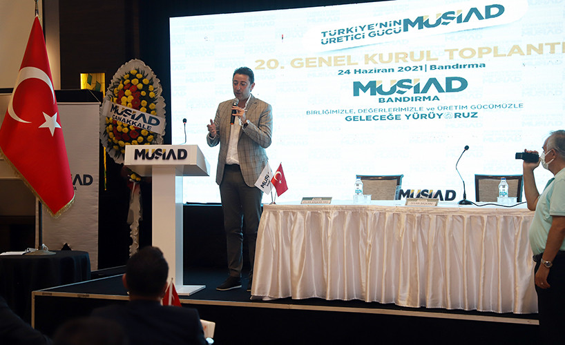 BAŞKAN TOLGA TOSUN MÜSİAD GENEL KURUL TOPLANTISINA KATILDI   Belediye Başkanı Av. Tolga Tosun Grand Asya Otel’de düzenlenen MÜSİAD Bandırma 20. Genel Kurul Toplantısına katıldı.   Toplantıda konuşma gerçekleştiren Belediye Başkanı Av. Tolga Tosun: “MÜSİAD Genel Kurulu hayırlı olsun. Bugüne kadar Bandırma Belediyesi olarak MÜSİAD’ın her zaman yanında olduk. Ne zaman destek isteseler karşılıklı iyi niyet içerisinde desteklemeye çalıştık. Çok zor bir pandemi döneminden geçtik. Özellikle iş dünyası ciddi sıkıntılarla karşılaştı. İnşallah 1 Temmuz normalleşme süreci ile birlikte tekrardan herkes işine gücüne tam randımanlı olarak döner. Bu sayede hem ülkemiz hem de bölgemiz ekonomisine katkı sağlamaya devam etmiş olacağız. MÜSİAD’ın yeni Başkanını ve yönetimini tebrik ediyorum. Bandırmamıza, bölgemize ve iş dünyasına hayırlı olmasını diliyorum” dedi.   MÜSİAD Bandırma 20. Genel Kurul Toplantısında Balıkesir Büyükşehir Belediye Başkanı Yücel Yılmaz ve MÜSİAD Genel Başkanı Abdurrahman Kaan’da yer aldı.