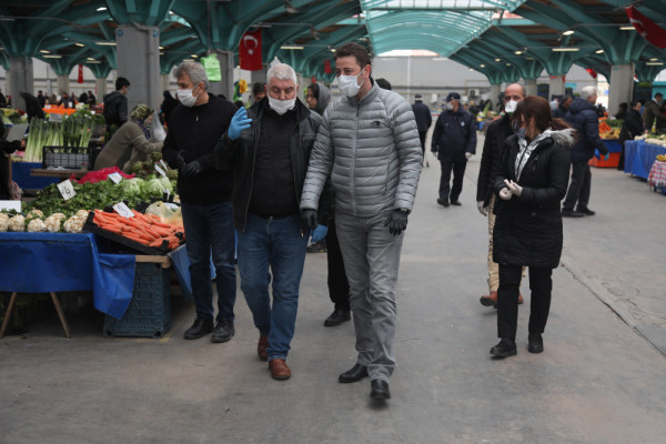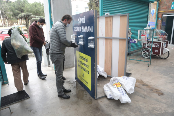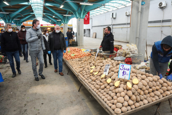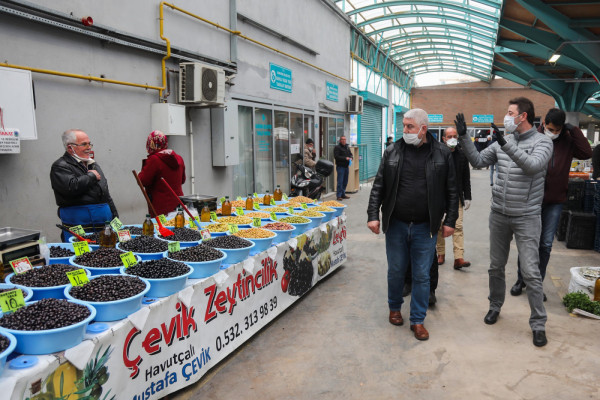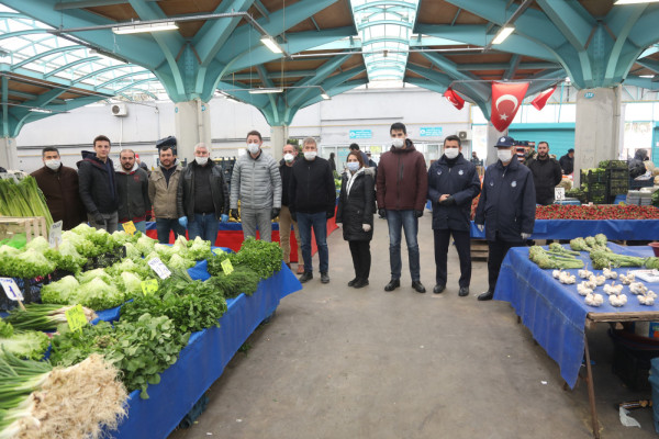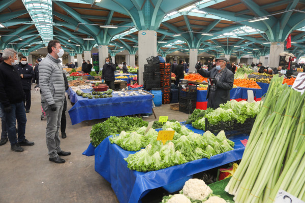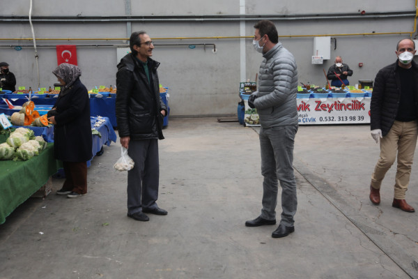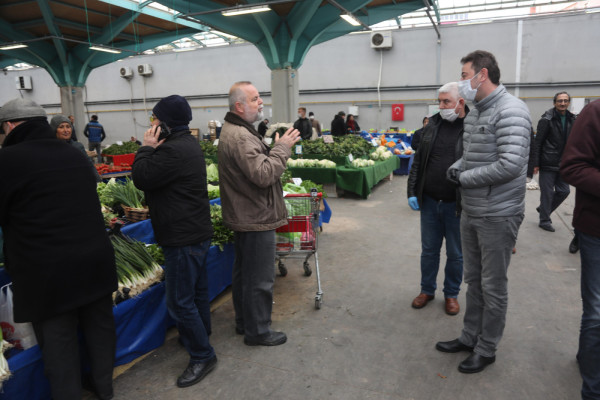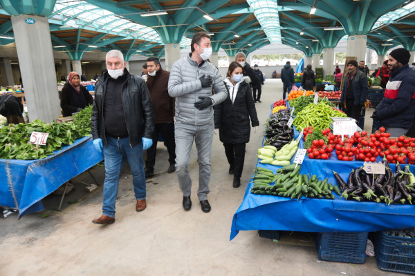 Salgınla mücadele çalışmaları kapsamında yerine getirilen hizmetleri takip etmek amacıyla Kapalı Pazar Yerinde incelemelerde bulunan Belediye Başkanı Av. Tolga Tosun, buradaki görevli personele hijyen kurallarına uyulması ve vatandaşların özenle bilgilendirilmesi gerektiğiyle ilgili bilgi verdi. Başkan Tolga Tosun ayrıca pazarcı esnafımızı ve vatandaşlarımızı da dolaşarak içinde bulunduğumuz süreçle ilgili açıklamalarda bulundu ve moralimizi hiçbir zaman bozmadan dayanışmayla bu süreci atlatacaklarını söyledi.