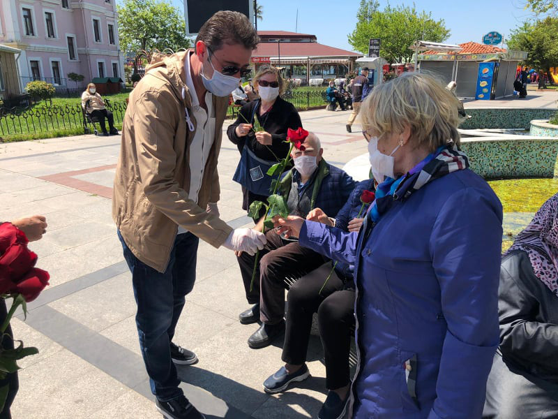 Belediye Başkanı Av. Tolga Tosun, Cumhuriyet Meydanında 65 yaş ve üstü vatandaşlarımızın anneler gününü kutlayarak çiçek ve maske dağıttı. Haftasonunda uygulanan sokağa çıkma yasağında yapılan yeni düzenlemeyle birlikte 65 yaş ve üstü vatandaşlarımızın saat 11:00 ile 15:00 arasında dışarıya çıkmalarına olanak sağlanırken, uzun süredir evlerinde olan vatandaşlarımız Cumhuriyet Meydanına gelerek güzel havanın tadını çıkarttı. Cumhuriyet Meydanındaki vatandaşlarımızı yanlız bırakmayarak ziyaret eden Başkan Tolga Tosun, bu anlamlı günde çiçek ve maske dağıtarak Anneler gününü kutladı ve vatandaslarla bir süre sohpet etti.