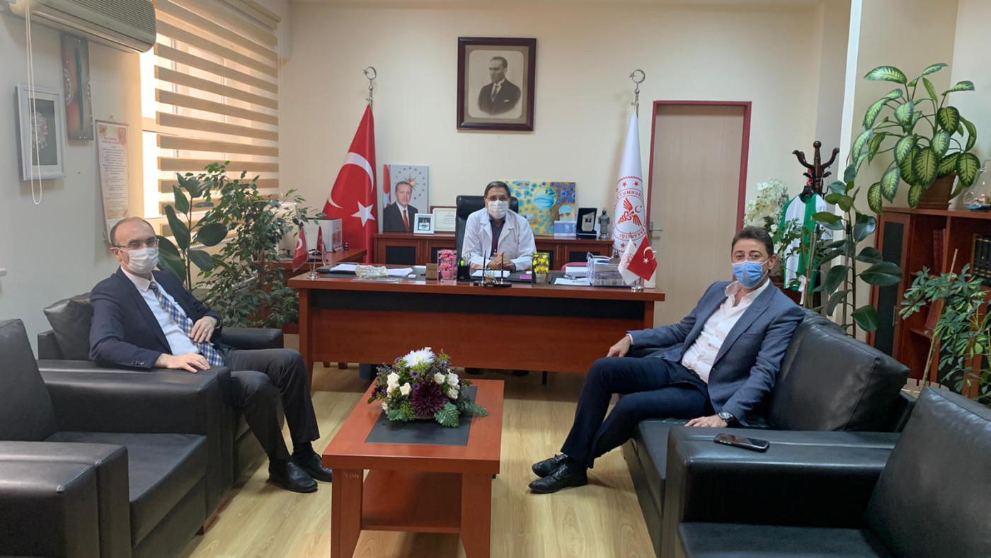 Belediye Başkanı Av.Tolga Tosun, Bandırma Kaymakamı Günhan Yazar ile birlikte Bandırma Devlet Hastanesi Başhekimi Ethem Karpuz’u makamında ziyaret etti. Tüm dünyada olduğu gibi ülkemizde de son dönemde iyice artan Covid-19 vakalarıyla ilgili görüş alışverişinde bulunmak amacıyla yapılan ziyarette bundan sonraki süreçte yapılacak olan çalışmalar ele alındı. Vatandaşlarımızın hem kendi hem de toplum sağlığı adına maske takmaları, sosyal mesafeye çok dikkat etmeleri ve kişisel hijyen kurallarına uymaları yönünde görüş belirtildi.