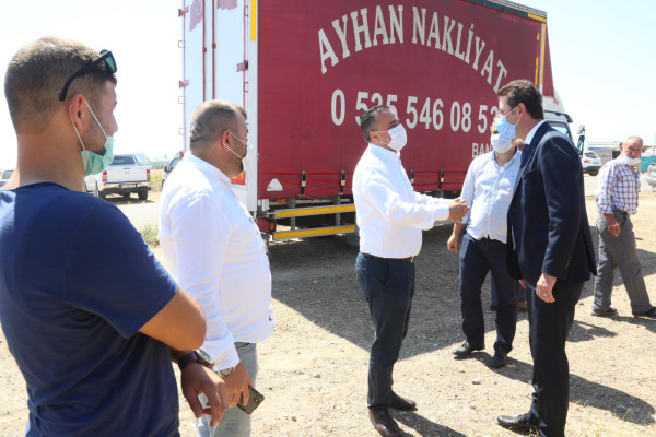 Bandırma Belediyesi Kurban Satış Yerini ziyaret eden Belediye Başkanı Av. Tolga Tosun, vatandaşlarla araya gelerek Bayramlarını kutladı. Kurban Bayramı öncesi kurban satışlarıyla ilgili bilgi alan Başkan Tolga Tosun, bir kurban satışına da aracılık etti. Başkan Tolga Tosun: “Kurban Satış ve Hayvan Pazarımızı ziyaret edip satıcılarımıza hayırlı işler diledik. Dini vecibelerimizi yerine getirmek için kurban almaya gelen vatandaşlarımızla sohbet edip bayramlarını kutladık. Salgın nedeniyle ekonomik zorlukların arttığı bu süreçte kurban alışverişi eskisi gibi canlı olmasa da bu zor sürecin bir an önce bitmesini diliyor, Tüm İslam Aleminin ve Hemşerilerimin Kurban Bayramı’nı kutluyorum” dedi.