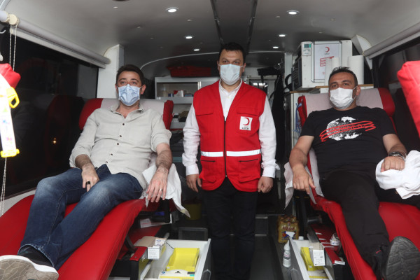 Belediye Başkanı Av. Tolga Tosun, örnek bir davranış sergileyerek kan bağışında bulundu. Kızılay tarafından Cumhuriyet Meydanında düzenlenen “Kan Bağışı Hayat Kurtarır” kampanyasına destek vermek amacıyla kan bağışında bulunan Başkan Tolga Tosun, bu kampanyaların salgın döneminde daha da önemli hale geldiğini belirterek tüm vatandaşlarımızı kan bağışına davet etti. Kampanyanın ilk gecesinde Başkan Tolga Tosun ile birlikte Bandırma Kaymakamı Günhan Yazar ve Belediye Meclis Üyesi Adem Yılmaz da yer alarak kan bağışına destek verdi. Kızılay tarafından ilk olarak 4-5-6 Mayıs tarihlerinde düzenlenen kan bağışı kampanyasının vatandaşlarımızdan gelen yoğun talep nedeniyle 11-12-13 Mayıs tarihlerinde tekrar düzenlendiğini ifade eden Başkan Tolga Tosun, Kovid-19 ve ramazan ayı nedeniyle azalan kan bağışlarının bu tür kampanyalarla ülkemizin kan stoklarının tekrar dolması adına önemli olduğunu söyledi. Unutmayın; kan Bağışı Hayat Kurtarır. Öte yandan kan bağışında bulunmak isteyen vatandaşlarımız, 11-12-13 Mayıs tarihlerinde 18:00 ile 24:00 saatleri arasında Cumhuriyet Meydanında yer alan Kızılay Kan Bağışı Merkezine gelerek kan bağışında bulunabilirler. Unutmayın; Kan Bağışı Hayat Kurtarır.