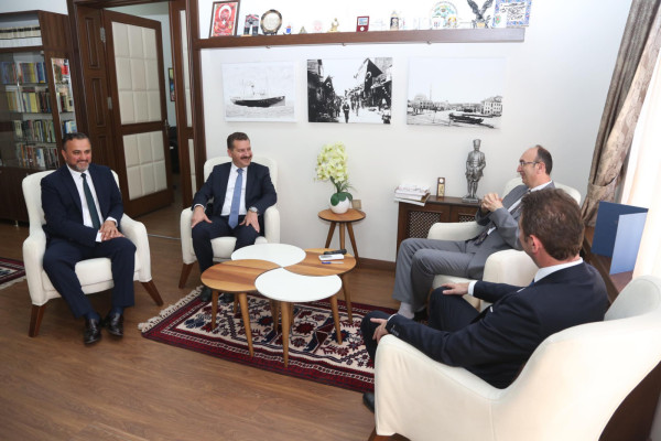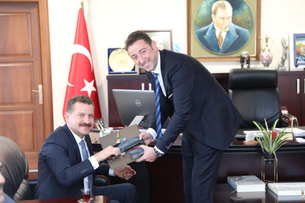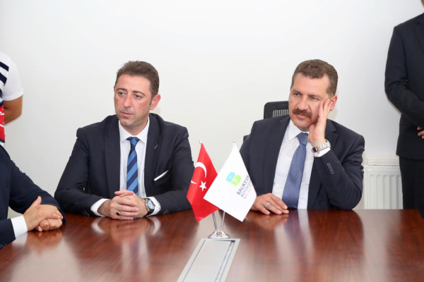 BAŞKANLAR MAKAMDA BİR ARAYA GELDİ   Belediye Başkanı Av. Tolga Tosun, Büyükşehir Belediye Başkanı Yücel Yılmaz’ı makamında kabul etti. Ziyarette Büyükşehir Daire Başkanları da yer aldı. Stratejik Plan Kuzey Bölge Çalıştayı kapsamında Bandırma’da bulunan Büyükşehir Başkanı Yücel Yılmaz, Belediye Başkanı Av. Tolga Tosun’ gerçekleştirdiği nezaket ziyareti kapsamında bir araya gelerek devam eden çalışmalar hakkında görüş alış-verişinde bulundu. Belediye’deki ziyaretin arından Bandırma Kaymakamlığı’na hareket eden iki Başkan burada Bandırma Kaymakamı Günhan Yazar ile bir araya geldi. Ziyarette Bandırma ve Balıkesir ile ilgili gündem maddeleri ele alındı. Kaymakamlık ziyaretlerinin ardında Büyükşehir Belediyesi Beyaz Masa Hizmet Birimini ziyaret eden iki Belediye Başkanı, buradaki iş ve işlemleri birlikte takip etti. Buradaki çalışmalarda iki belediyenin birlikte hareket ederek sorunlara çözüm üretilmesi gerektiği konusunda görüş birliğine varıldı.