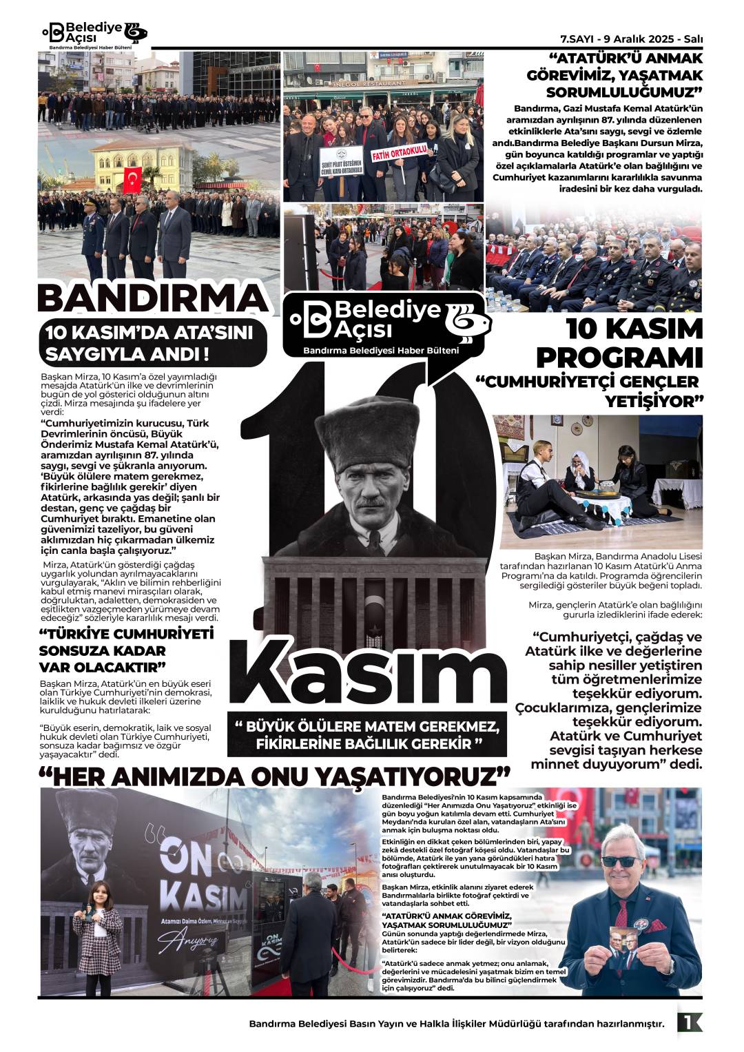 Bandırma Belediyesi’nin 1aylık haber bülteni “Belediye Açısı” 7. sayısıyla dijital platformlarda sizlerle! 👇