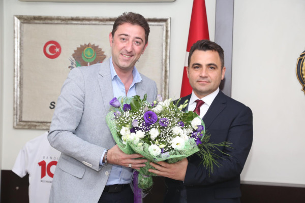 BELEDİYE BAŞKANI AV. TOLGA TOSUN İLÇE EMNİYET MÜDÜRÜNÜ ZİYARET ETTİ   Belediye Başkanı Av. Tolga Tosun, İlçe Emniyet Müdürü Soner Duran’ı makamında ziyaret etti.   Ziyaretle ilgili açıklama yapan Belediye Başkanı Av. Tolga Tosun: “İlçe Emniyet Müdürümüz Soner Duran’ı ziyaret ettik. Güvenlik güçlerimiz festival boyunca özverili çalışmalarda bulunarak festivalimizin sıkıntısız geçmesinde katkılarından dolayı hepsine teşekkür ediyorum. Bandırmalılar adına çiçek plaketimizi tüm emniyet çalışanlarımızı temsilen Emniyet Müdürümüze verdik” dedi.