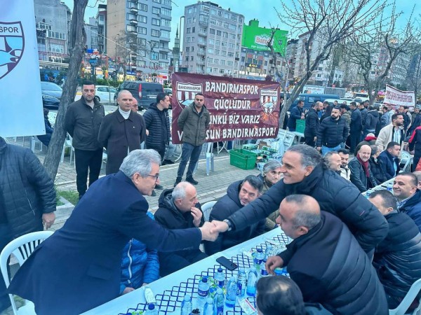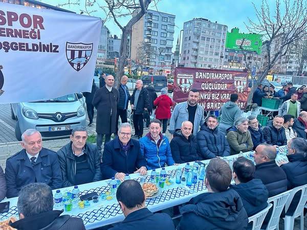 kentimizin renklerine gönül vermiş, Bandırmaspor sevdasını her koşulda yüreğinde taşıyan Bandırmaspor Taraftarlar Derneği’nin balıkhanede düzenlediği iftar yemeğine katıldık. Her zaman olduğu gibi bugünde aynı sevdanın etrafında kenetlendik. Emek veren, katkı sunan, yüreği Bandırmaspor için atan herkese teşekkür ediyorum. Bu kent sizinle güzel, bu sevda sizinle büyüyor!