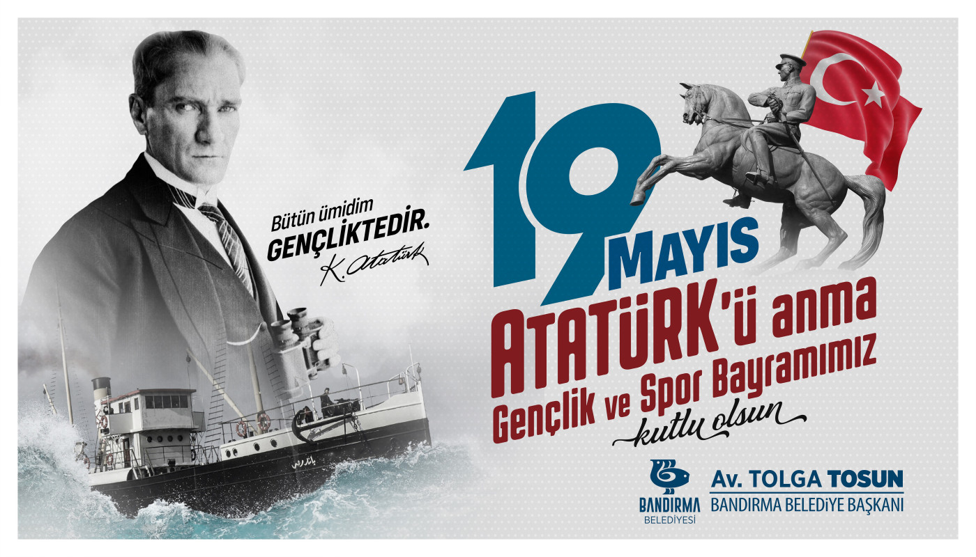 Ebedi Başkomutanımız Mustafa Kemal ATATÜRK, aşığı olduğumuz bu kentin adını taşıyan Bandırma Vapuruyla; 16 Mayıs 1919’da işgal altındaki İstanbul’dan Anadolu’ya doğru yola çıkmış ve 19 Mayıs 1919’da Samsun’a ulaşarak, destansı Kurtuluş Savaşımız için Türk Milletine liderlik etmiştir. Art arda yaptığı kongrelerle ulusumuzu birleştirmiş, şanlı ordumuza ve milletimize Başkumandanlık yapmıştır. İşgal altındaki yurdumuz düşmandan temizlenmiş, 17 Eylül 1922’de, Bandırma Ay Yıldız Tepe’de sıkılan son kurşunla, tüm düşmanlar bu topraklardan sökülüp atılmıştır. ATATÜRK önderliğindeki Yüce Türk Milleti emperyalist devletlere unutulmaz bir ders vermiştir. O ders şudur: Türk Milleti bu topraklarda, sonsuza dek özgür ve bağımsız yaşayacaktır… Ulusal Kurtuluş Savaşımızın ilk adımında ve son kurşununda Bandırma ismiyle, ruhumuzla var olmaktan, Gazi Mustafa Kemal ATATÜRK’ün yolunda ve izinde olmaktan gururluyuz. Cumhuriyetimizi kuran Yüce Önderimiz Gazi Mustafa Kemal ATATÜRK; “Benim doğum günüm 19 Mayıs” demiştir. Bu sözüyle, Kurtuluş Mücadelesinin ilk adımının önemine dikkat çekmiştir. Cumhuriyeti emanet ettiği gençlere, bugünü bayram olarak ilan etmiştir. Türk Gençliği olarak birinci vazifemiz; Atatürk devrimlerini, Laik Cumhuriyetimizi, özgürlüğümüzü sonsuza dek savunmak ve korumaktır. Mevcudiyetimizin ve istikbalimizin yegâne temeli budur. Bu vazifemizden, tüm olumsuzluklara rağmen asla vazgeçmeyeceğiz.    Yine bir sözünde; “Benim iki önemli eserim var: Biri Türkiye Cumhuriyeti, diğeri Cumhuriyet Halk Partisi” demiştir. Bizler de Cumhuriyet Halk Partililer olarak Atamızın izinde, Cumhuriyetin yılmaz bekçileriyiz. Yüce ATATÜRK; kurduğunuz Cumhuriyetle, bilimin ışığındaki devrimlerinizle; Türk Milletinin kalbinde sonsuza dek yaşayacaksınız. Doğum gününüz kutlu olsun... Kurtuluş Savaşımızın Başkomutanı, Cumhuriyetimizi kuran Gazi Mustafa Kemal ATATÜRK’ü, silah arkadaşlarını, kahraman şehit ve gazilerimizi rahmet, minnet ve şükranla anıyorum. 19 Mayıs ATATÜRK’ü Anma, Gençlik ve Spor Bayramımızı coşkuyla ve yürekten kutluyorum. Av.Tolga TOSUN / BELEDİYE BAŞKANI