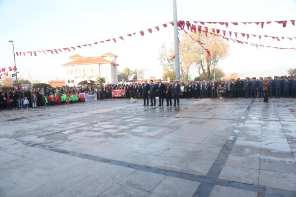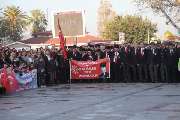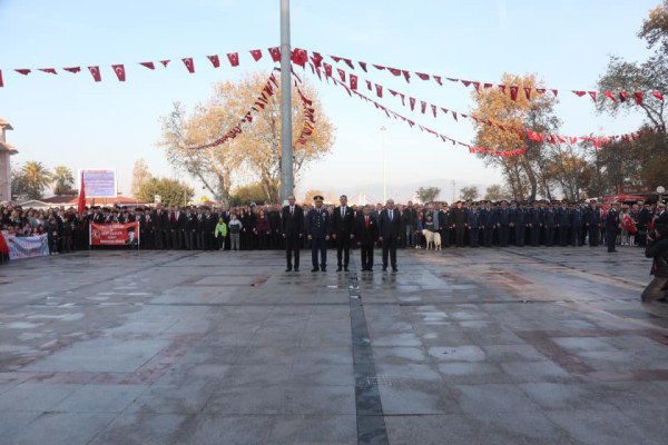 CUMHURİYETİMİZİN KURUCUSU ULU ÖNDER MUSTAFA KEMAL ATATÜRK VEFATININ 81.YILINDA TÖRENLER İLE ANILDI Cumhuriyet Meydanında düzenlenen törende saatler 09.05’i gösterdiği sırada tüm Türkiye ile birlikte Atamıza saygıya duruldu. Saygı duruşunun ardından İstiklal Marşı okunarak Atatürk Anıtına çelenkler bırakıldı. Törenin sonlanmasıyla Barış Manço Kültür Merkezinde hazırlanan anma programına geçildi. 10 Kasım münasebetiyle düzenlenen resim yarışmalarında dereceye giren öğrencilere ödülleri verildi. Şehit Mehmet Günenç Lisesi’nin hazırlandığı şiir ve müzik dinletisinde duygu dolu anlar yaşandı. Büyük Önder Mustafa Kemal Atatürk’ü Gurur, Özlem ve Saygıyla anıyoruz.