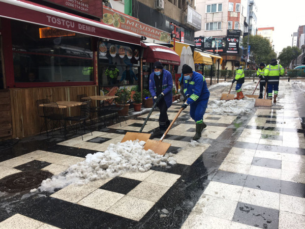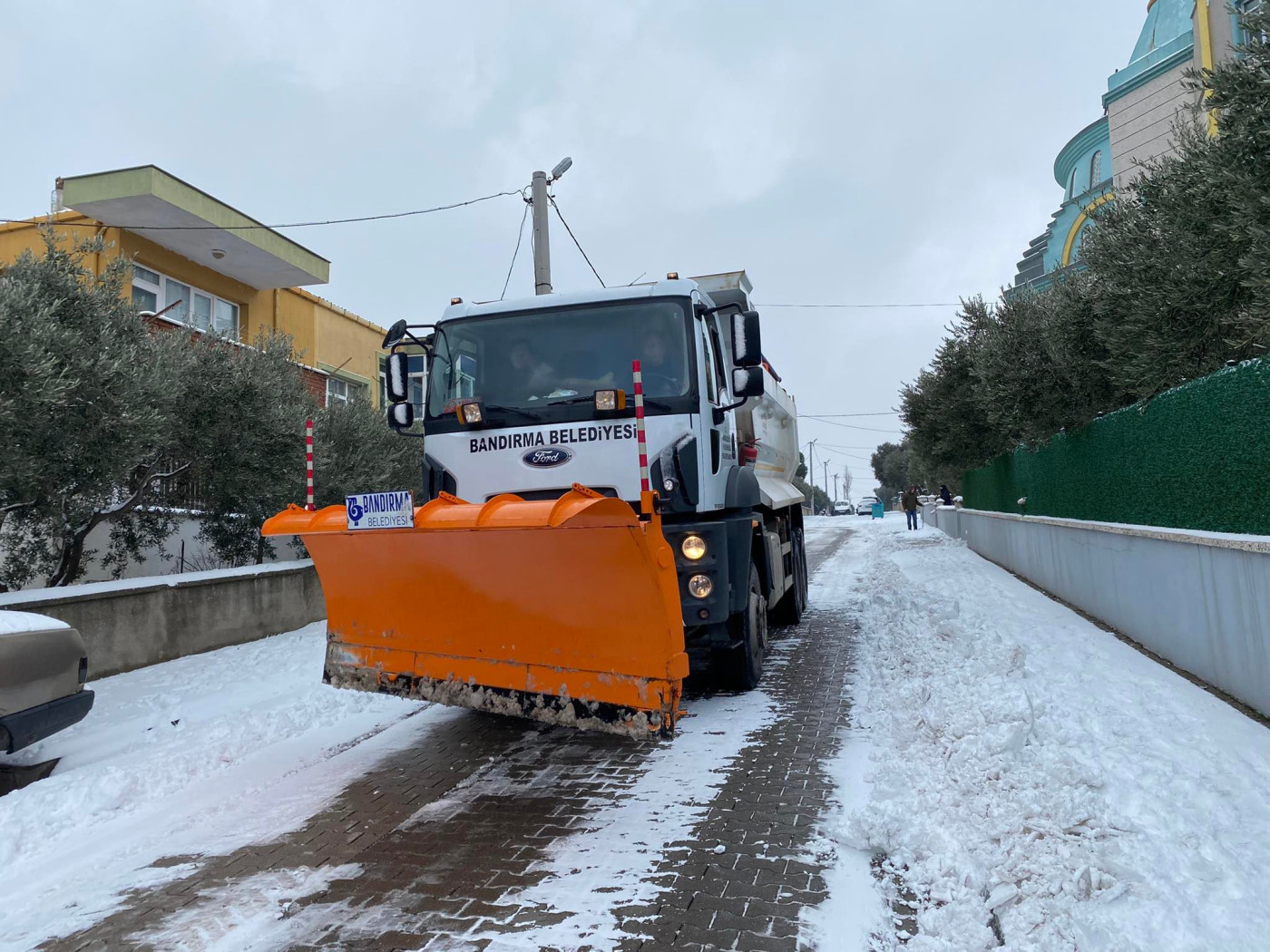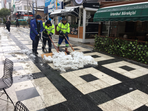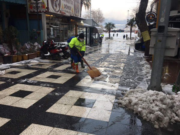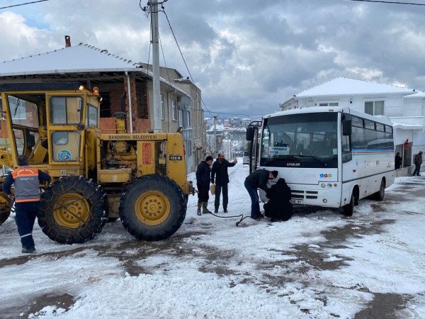 Ekiplerimiz çalışmalarına aralıksız devam ediyor. Vatandaşlarımızın yaşamlarının olumsuz etkilenmemesi için gece, gündüz çalışan ekiplerimiz çalışmalarını merkezde olduğu gibi kırsal mahallelerimizde de sürdürüyor.    Bandırma Belediyesi, kardan kapanan yolların ulaşıma açılması için kar küreme ve tuzlama araçlarıyla sahada çalışmalarına devam ediyor. Aksakal, Edincik ve Bandırma'da ekiplerimiz 7/24, cadde ve sokaklarda olumsuz koşulların oluşmaması için görevlerini yerine getiriyorlar. Ekiplerimiz kent merkezinde biriken karları kürüyerek temizliyor. Kar küreme çalışmalarının yanında tuzlama çalışmaları da devam ediyor..   Bandırmamızın ana arterlerinde tuzlama çalışması yapılmıştır. Kar lastiği olmayan araçların trafiğe çıkması sonucu trafik akışını ve ekiplerimizin çalışmalarını olumsuz etkilemektedir. Kış şartlarına uygun olmayan araçların trafiğe çıkmaması önemle rica olunur.    Kentimizin yollarında sorun tespit eden vatandaşlarımızın 0(538) 097 00 00 WhatsApp hattımızdan ve Halk Masamızdan bize ulaşarak bilgi verebilirler.