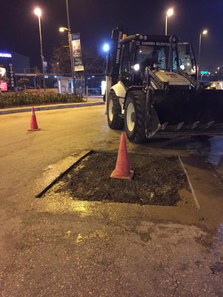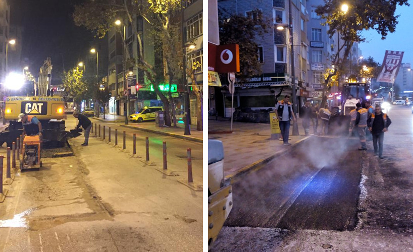 EKİPLERİMİZ ASFALTLAMA ÇALIŞMALARINI GECEDE SÜRDÜRÜYOR   Bandırma Belediyesi, vatandaşlara hizmet götürmek için gece gündüz çalışmalarını sürdürüyor.   Bandırma Belediyesi Fen İşleri Müdürlüğüne bağlı ekipler, merkez İnönü Caddesi ve Atatürk Caddesi’nde sıcak asfalt yama çalışması yaptı. Yoğun bir araç sirkülâsyonun olduğu caddede gündüz yaşanan trafik yoğunluğu nedeniyle vatandaşlarımızın ve esnafımızın rahatsız olmaması için çalışmalar gece geç saatlerde yürütüldü. Yolların bozuk olan kısımları ekipler tarafından düzgünce kesilerek içleri sıcak asfaltla yükseklik payı kalmayacak şekilde dolduruldu.