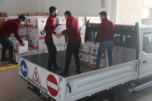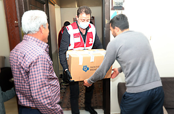 GÖREVİMİZİN BAŞINDAYIZ, VATANDAŞLARIMIZIN YANINDAYIZ   Bandırma Belediyesi, haftasonunda uygulanan sokağa çıkma yasağında tüm ekipleriyle birlikte görev başında.   Belediye Başkanı Av. Tolga Tosun öncülüğünde çalışmalarına hız veren ekipler bir yandan ihtiyaç sahipleri için hazırlanan ve içlerinde gıdadan temizlik maddesine kadar 17 farklı ürünün olduğu erzak kolilerin dağıtımını yaparken diğer yandan da bu yıl 23 Nisan’ın 100. Yılı olması nedeniyle içlerinde çeşitli süslerin, hediyelik ürünlerin ve çocuklarımız için özel bakı olan Atamızın “Nutuk” eserinin yer aldığı hediye paketlerin dağıtımı yapılıyor. Bu çalışmalarla birlikte sokağa çıkma yasağında vatandaşlarımızdan gelen ekmek veya ilaç taleplerine de anında cevap verilerek temin edilip teslim ediliyor. Çalışmalara ekiplerin başında yer alarak yön veren Belediye Başkanı Av. Tolga Tosun, bu zor süreçte Bandırma Belediyesi’nin tüm birimleriyle vatandaşımızın yanında olduğunu belirterek her türlü ihtiyaç durumunda görevlerinin başında olduklarını söyledi.