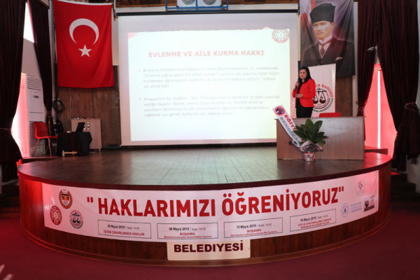HUKUK OKUR, YAZARLIĞI SEMİNERLERİ DEVAM EDİYOR   Bandırma Belediyesi’nin öncülüğünde düzenlenen Hukuk Okur Yazarlığı Seminerlerinin ikincisi olan “Boşanmanın Sonuçları” semineri gerçekleşti.   Av. Tuğçe Çallıoğlu tarafından verilen seminer yaklaşık 2 saat sürdü. Çiftlerin boşanmaları konusunda bilgiler sunan Av. Tuğçe Çallıoğlu interaktif olarak dinleyicilerin sorularını da yanıtladı.   Seminer sonunda Belediye Meclis Üyemiz Av. Merve Polat desteklerinden ve katılımlarından dolayı Av. Tuğçe Çallıoğluna teşekkür ederek Bandırmayı temsil eden plaketini takdim etti.