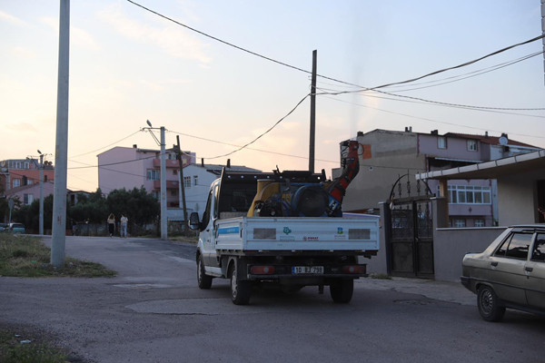 İLAÇLAMA ÇALIŞMALARI KENT MERKEZİNDE YOĞUNLAŞTI   Bandırma Belediyesi ekipleri tarafından, sıcakların artmasıyla birlikte üremeye başlayan sivrisinek ve karasinek larvalarının oluşumunu engellemek amacıyla ilaçlama çalışmaları kent merkezinde yoğunlaştı.   Vatandaşların haşere ve sinekten uzak bir yaz geçirmesi için Belediye Başkanı Av. Tolga Tosun’un talimatı ile başlatılan çalışma kapsamında şehrin birçok noktasında ilaçlama yapan ekipler, yaz mevsiminin gelmesiyle birlikte çoğalan haşerelere ve zararlı böceklere karşı ilaçlama çalışmalarını gece gündüz sürdürüyor.   Buna bağlı olarak sulak alanlar, dere yatakları, şehir merkezi ve tüm mahallelerde sivrisinek ve karasinek ilaçlaması devam ederken, ilaçlama çalışmaları tüm kent genelinde aralıksız olarak devam edecek.
