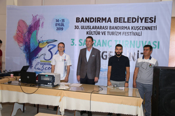 Bandırma Belediyesi sportif faaliyetler kapsamında düzenlediği 3. Satranç Turnuvası Belediye Başkanı Av. Tolga Tosun tarafından yapılan açılış hamlesiyle başladı. Harun Karacan Gençlik ve Spor Merkezinde 4 farklı kategoride iki gün boyunca devam edecek olan turnuvaya çevre il ve ilçelerden 250'nin üzerinde sporcu katılım gösterdi. Turnuvanın açılış konuşmasını yapan Başkan Tolga Tosun, Bandırma Belediyesi olarak kültürel, sanatsal ve sportif faaliyetlere önem verdiklerini belirterek bu yıl 30.su düzenlenen festival kapsamında Satranç Turnuvasına katılım gösteren tüm sporculara başarılar diledi. Başkan Tolga Tosun: "Bandırma Belediyesi olarak Satranç Turnuvası'nın bu yıl 3.sünü düzenliyoruz. 4 farklı kategoride çevre il ve ilçelerden gelen 250'nin üzerinde sporcu kardeşimiz bu turnuvada yer alıyor. Güzel bir turnuva olmasını diliyorum, katılım gösteren tüm katılımcılara başarılar diliyorum" dedi.