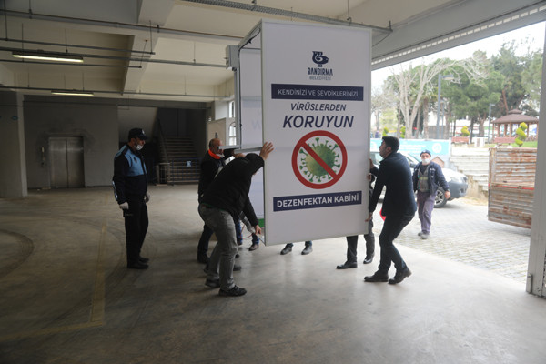 KAPALI PAZAR YERİNE MOBİL DEZENFEKTAN KABİNLERİ MONTE EDİLDİ   Bandırma Belediyesi, Kapalı Pazar Yerinde yeni bir hijyen uygulamasını hizmete aldı. Salgınla mücadele kapsamında Pazar Yerine alışverişe gelen vatandaşlarımızın sağlığının en iyi şekilde korunması için giriş bölümüne Belediye ekiplerince üretilen Mobil Dezenfektan Kabinleri monte edildi.   Öte yandan Bandırma Belediyesi, Kapalı Pazar Yeri girişinde maskesi olmayan yada koruma işlevi görmeyecek maskelerle gelen vatandaşlarımıza maske dağıtırken diğer yandan da ateş ölçümleri de yaparak her hangi bir risk durumu olup olmadığı kontrol edildi.