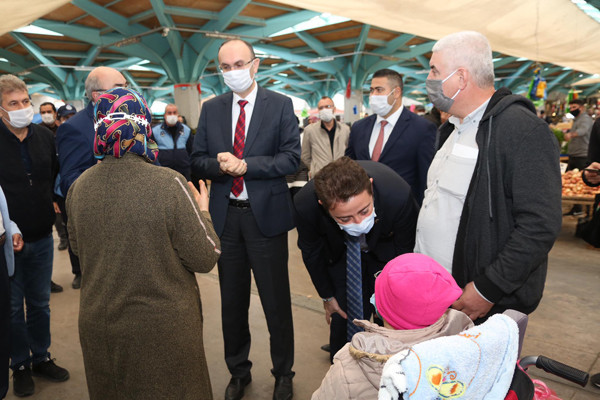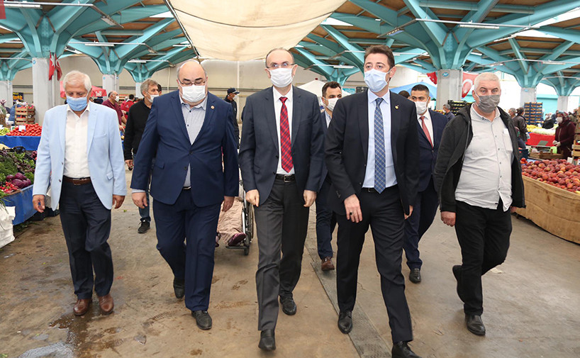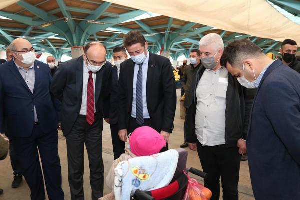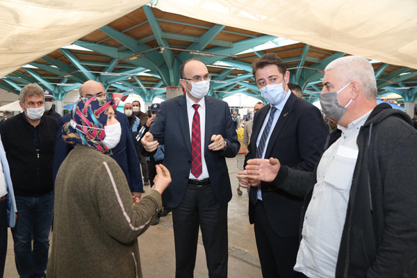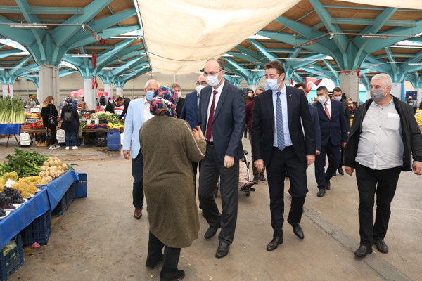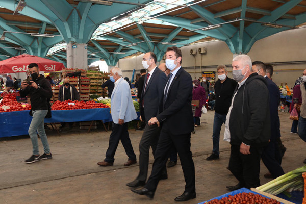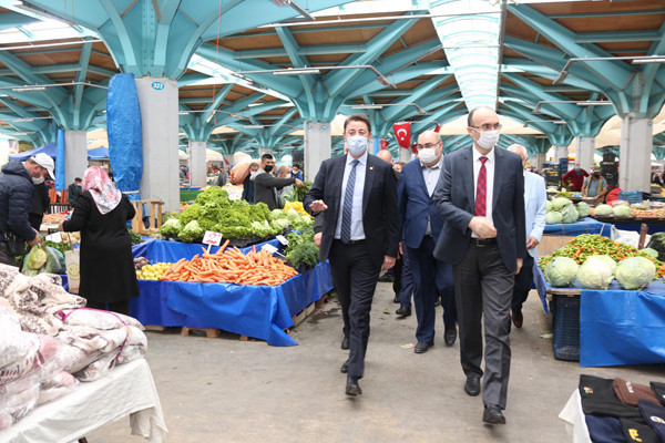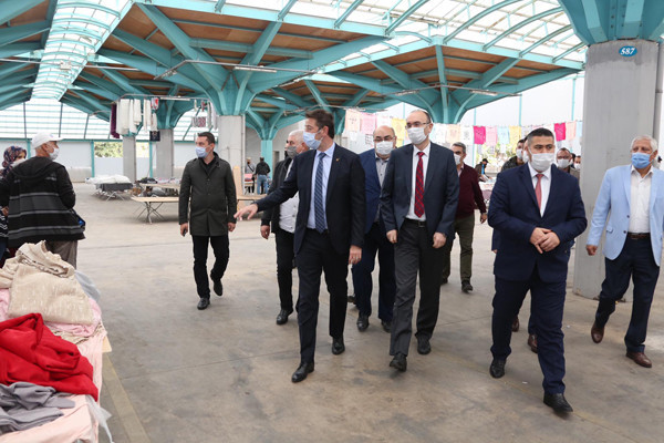 KAPALI PAZARYERİNE GEÇEN PAZARTESİ PAZARI DENETLENDİ   Belediye Başkanı Av. Tolga Tosun ve Kaymakam Günhan Yazar, Hıfzısıhha kararı ile Kapalı Pazar Yerine alınan Pazartesi Pazarını İlçe Emniyet Müdürü Soner Duran ve ilgili esnaf odalarının başkanlarıyla birlikte incelemelerde bulundular.   Konu ile ilgili açıklama yapan Belediye Başkanı Av. Tolga Tosun: “Hem Pandemi sürecinde alınan tedbirleri yerinde inceledik hem de bugün ilk kez Kapalı Pazaryerinde açılan Pazartesi Pazarımızın sorunsuz olması konusunda incelemelerde bulunduk” dedi.