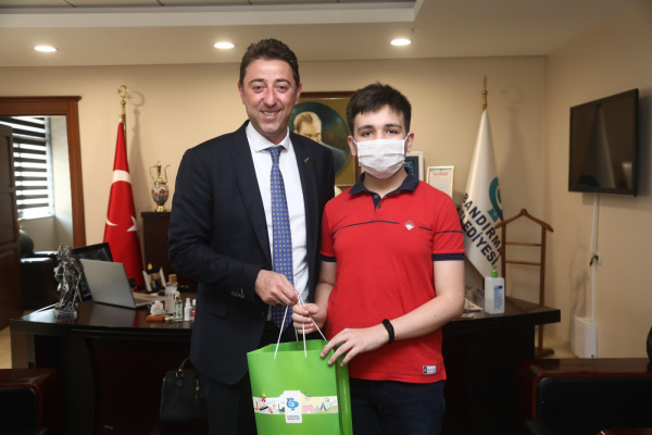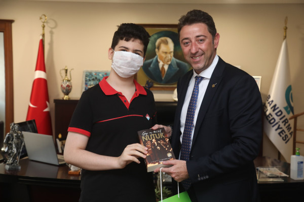 Belediye Başkanı Av. Tolga Tosun, Liselere Geçiş Sınavında (LGS) 500 tam puan alarak Türkiye 1.si olan Bandırma Bahçeşehir Koleji öğrencileri Kerem Yiğit Küçükkale ve Mert Kemal Küreci’yi makamında ağırladı.  Ziyarette Bandırma Bahçeşehir Okulları Müdürü Mebrike Balvar ve Müdür Yardımcısı Ahmet Çatal öğrencilerle birlikte hazır bulundu. Öğrencilerin LGS’de elde ettiği başarıdan dolayı tebrik eden Başkan Tolga Tosun, öğrencilere birer küçük altın ve Ulu Önder Mustafa Kemal Atatürk’ün eseri “Nutuk” kitabını hediye ederek bundan sonraki eğitim hayatlarında başarılar diledi.