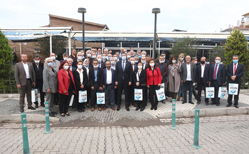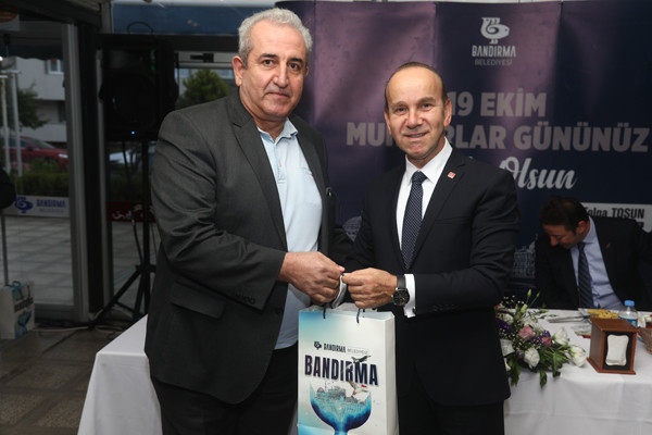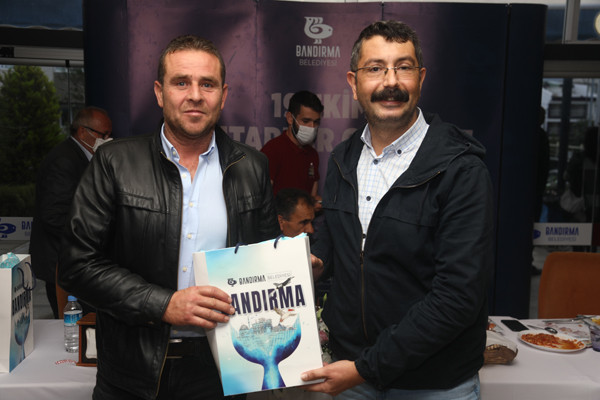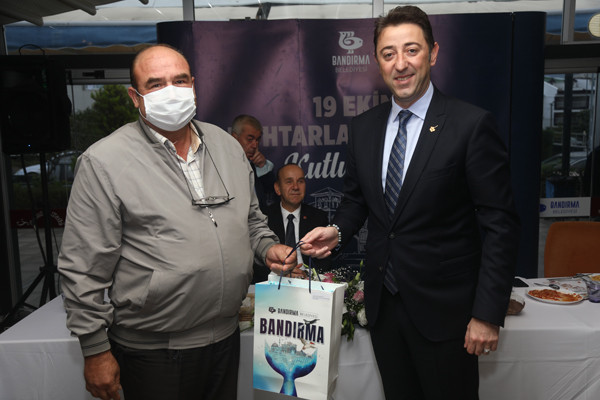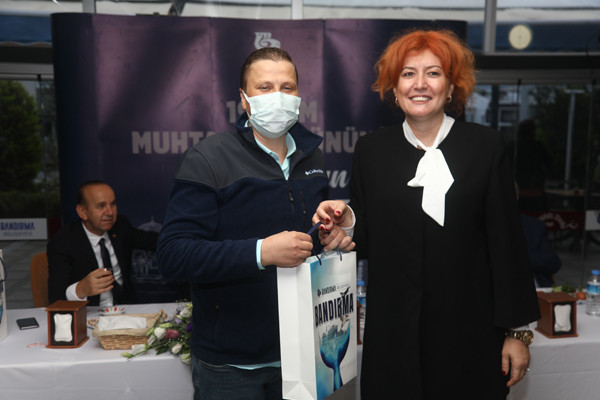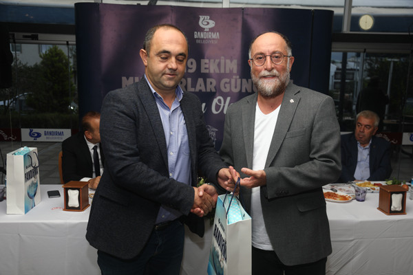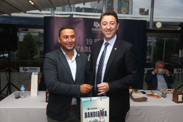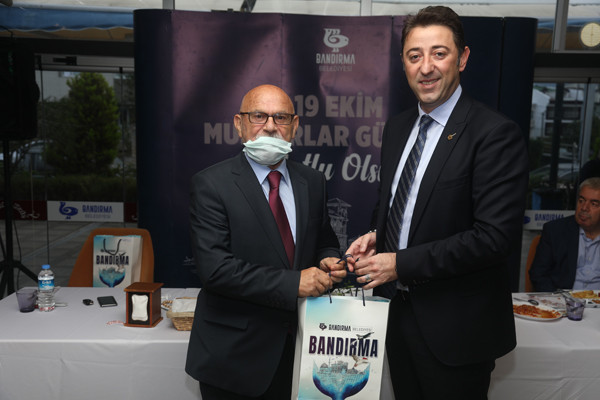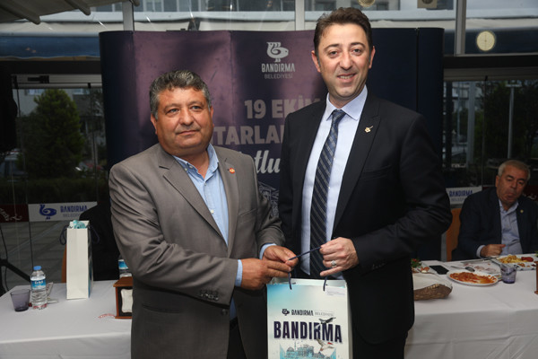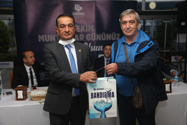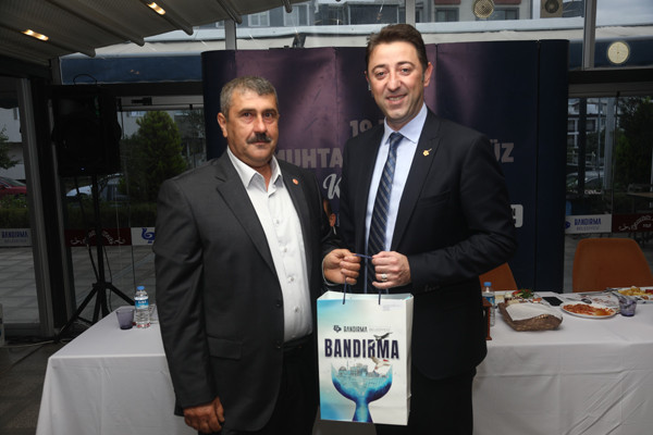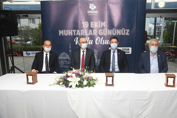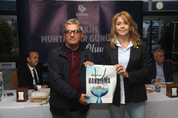 MUHTARLAR BELEDİYEMİZİN DÜZENLEDİĞİ KAHVALTIDA BULUŞTU   Bandırma Belediyesi 19 Ekim Muhtarlar Günü dolayısıyla tüm muhtarları kahvaltıda ağırladı. Kahvaltıya Belediye Başkanı Tolga Tosun, Meclis üyeleri ile muhtarlar katıldı.   Kahvaltıdan sonra konuşma gerçekleştiren Belediye Başkanı Av. Tolga Tosun: “18 aydır beraber çalışıyoruz. Güzel bir birliktelik olduğunu düşünüyorum. Bandırmamızın hem kırsalında hem de merkezinde çok ciddi çalışmalar yapıyoruz. Bundan önce ki muhtarlar gününde geçen yıl daha yeni Belediye Başkanıydık yapılanmalarımızı yeni oluşturuyorduk. O zamanki düşüncelerimizde her mahallemize en iyi şekilde hizmeti götürebilmek vardı. Ancak mart ayında yaşanan ve dünya krizine dönen pandemi ile beraber bütün planlarımızı ikinci plana atarak bunun yerine vatandaşlarımızın sağlığını korumak adına çalışmalara öncellik verdik. O dönemde muhtarlarımız ile çok özverili bir şekilde çalışma yürüttük. İmkanlar kısıtlı ihtiyaçlar sınırsız ancak Belediye olarak tüm mahallelerimize belirli bir program dahilinde hizmetlerimizi götürmeye çalışıyoruz. Sizler bizlerin mesai ve ekip arkadaşlarımızsınız. Sizler bizi ne kadar iyi yönlendirirseniz bizlerde o kadar organize şekilde iyi çalışırız. Belediye olarak her zaman muhtarlarımızın arkasındayız oradan oy geldi buradan oy gelmedi gibi bir düşünce içerisine girmeden Bandırma sevdalısı olarak tüm mahallelerimize eşit şekilde hizmet etmeye devam edeceğiz” dedi.   Organizasyon sonunda Belediye Başkanı Av. Tolga Tosun ve Meclis Üyeleri Muhtarlara günün anlam ve önemini belirten hediye takdiminde bulundular. Organizasyon hatıra fotoğraf çekimi ile son buldu.