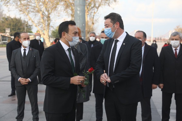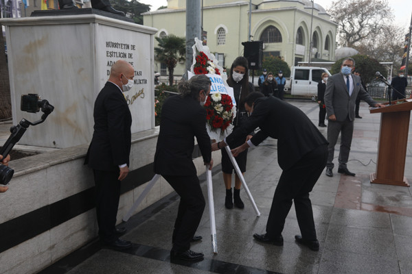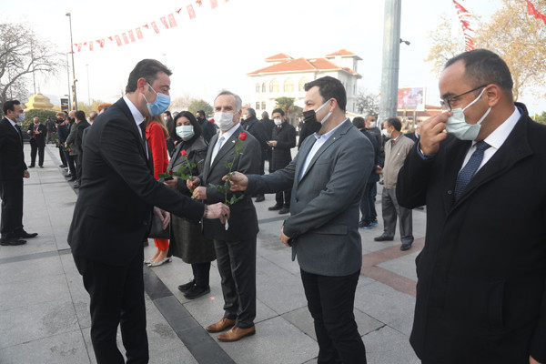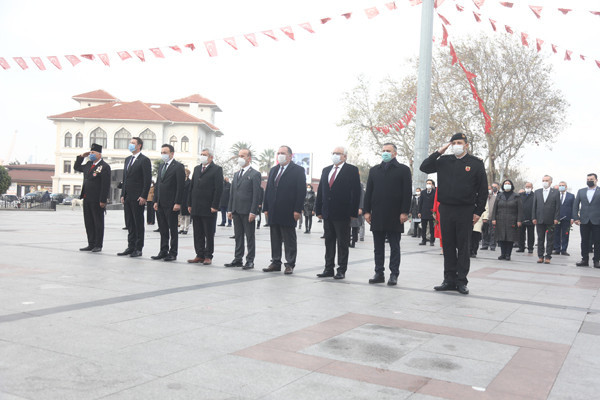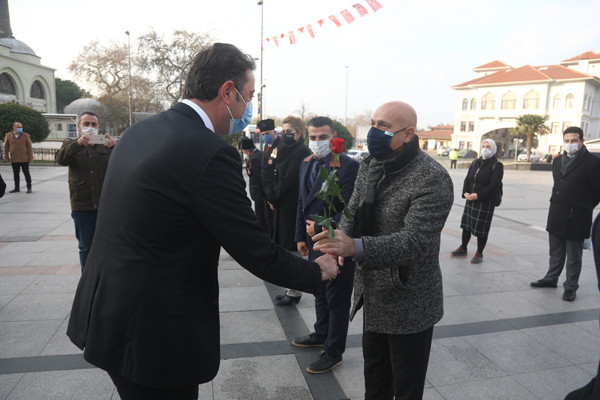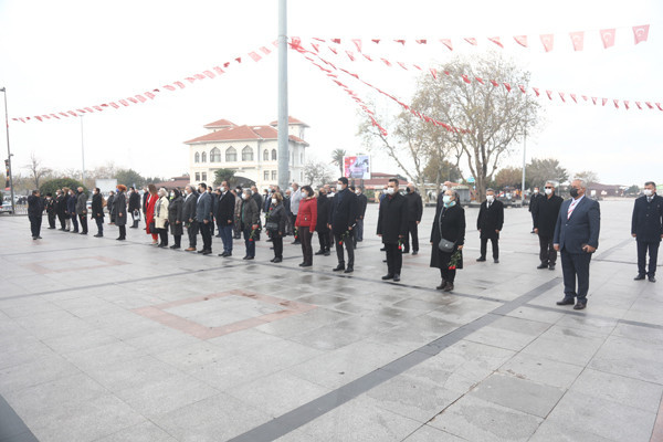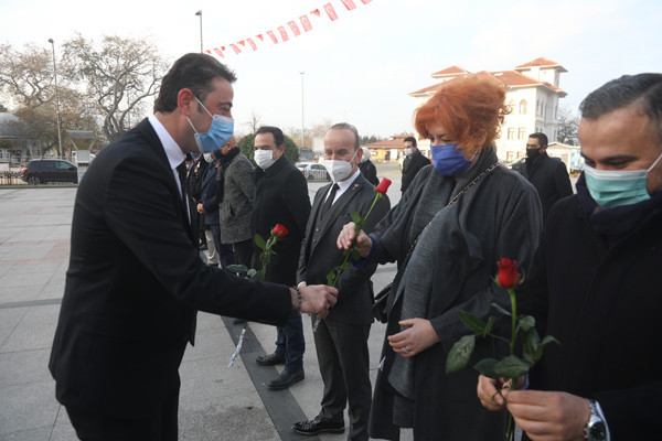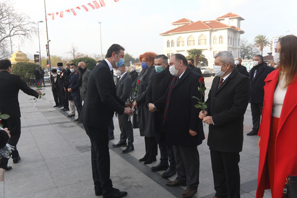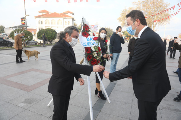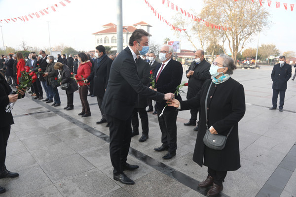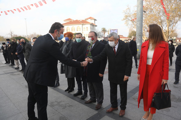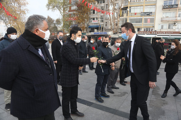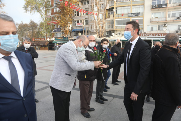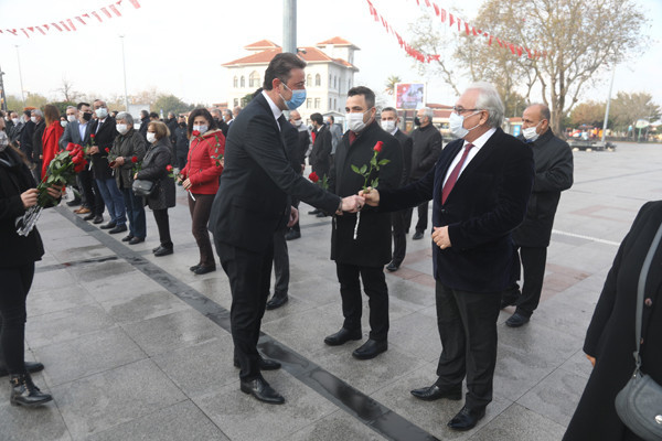 ÖĞRETMENLER GÜNÜ TÖREN İLE KUTLANDI 24 Kasım Öğretmenler Günü Bandırma Cumhuriyet Meydanında yapılan törenle kutlandı. Belediye Başkan’ı Av. Tolga Tosun tören başlamadan önce tören alanında bulunan öğretmenlere gül takdim etti. Törene Bandırma Belediye Başkan’ı Av. Tolga Tosun, İlçe Milli Eğitim Müdürü Mutlu Aslan, öğretmenler, siyasi parti temsilcileri, sivil toplum kuruluşları, dernekler ve daire amirleri katıldı. Atatürk Anıtı’na İlçe Milli Eğitim Müdürü Mutlu Aslan’ın öğretmenler adına çelenk sunmasıyla başlayan tören, saygı duruşu ve İstiklal Marşı’nın okunması ile devam etti. Tören İlçe Milli Eğitim Müdürü Mutlu Aslan’ın günün anlam ve önemini belirten konuşmasının ardından son buldu. Törenden sonra Belediye Başkan’ı Av. Tolga Tosun, Milli Eğitim Müdür’ü Mutlu Aslan’ı makamında ziyaret ederek tüm öğretmenler adına çiçek takdim etti.